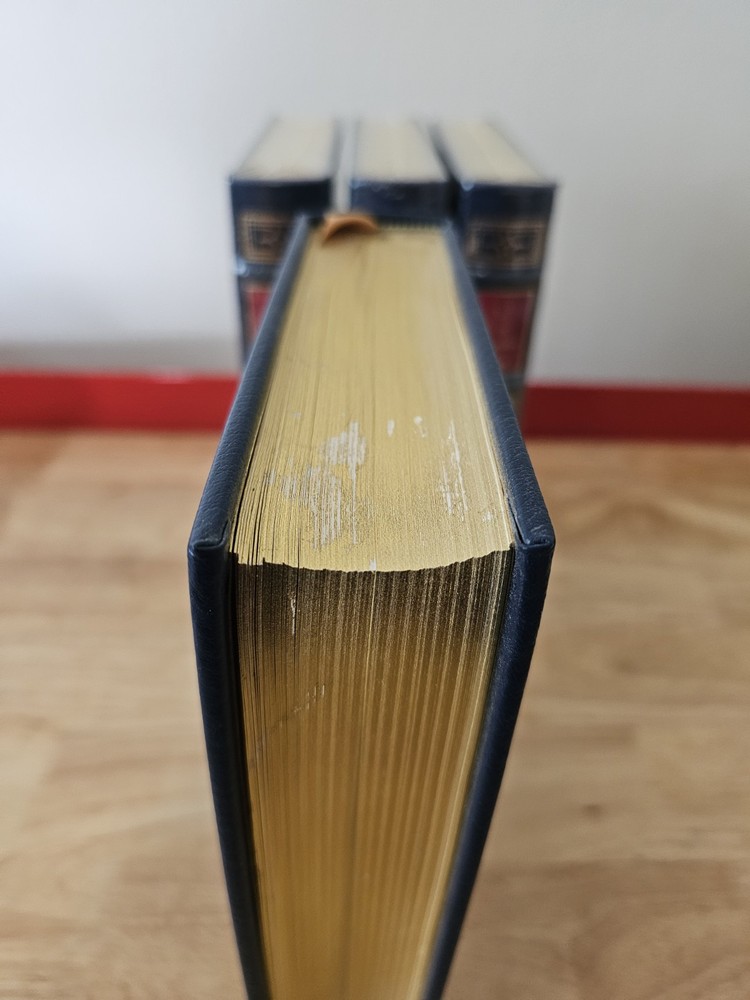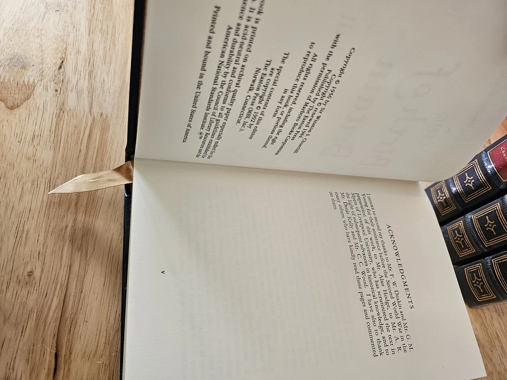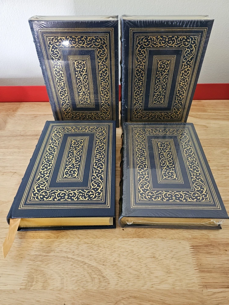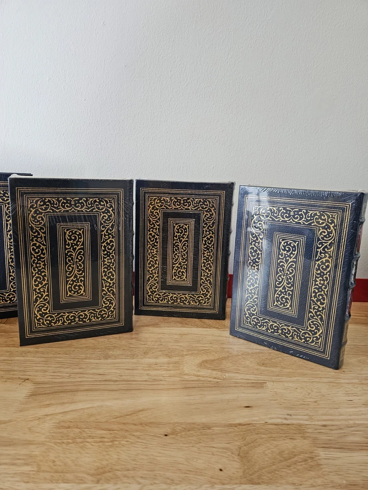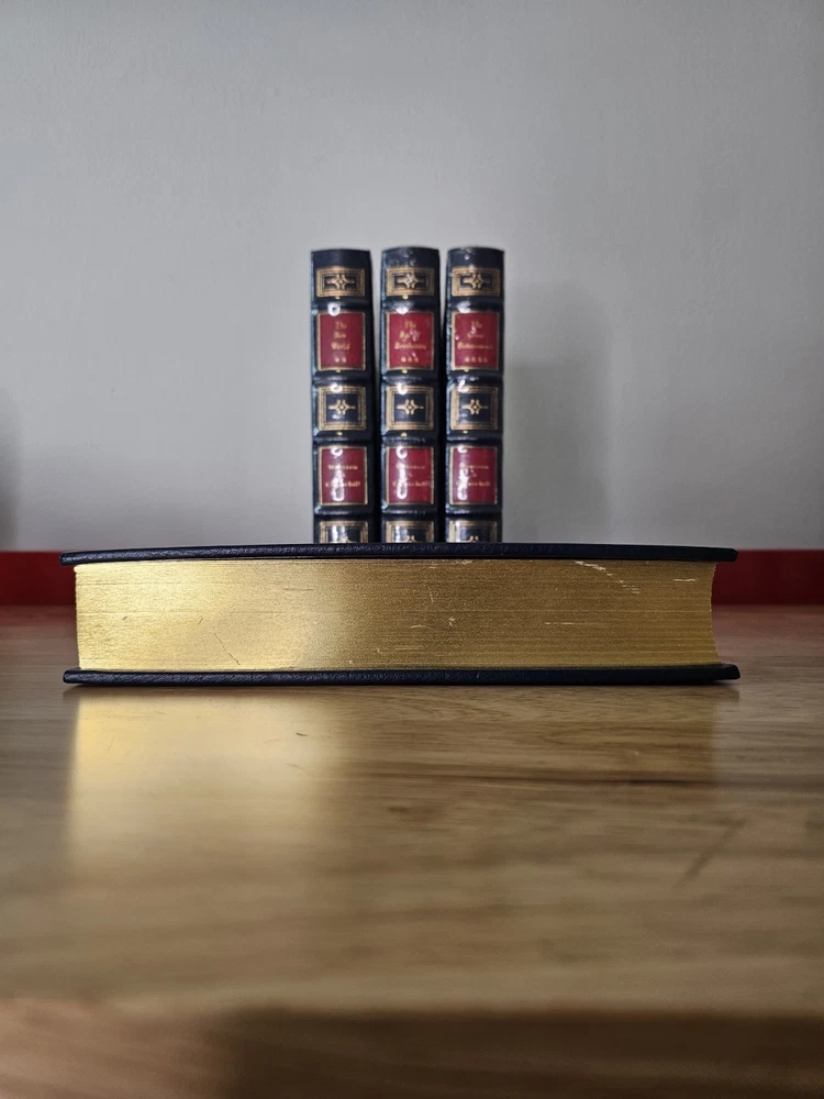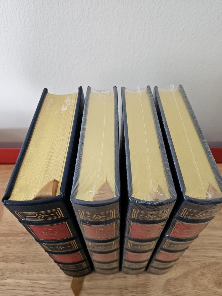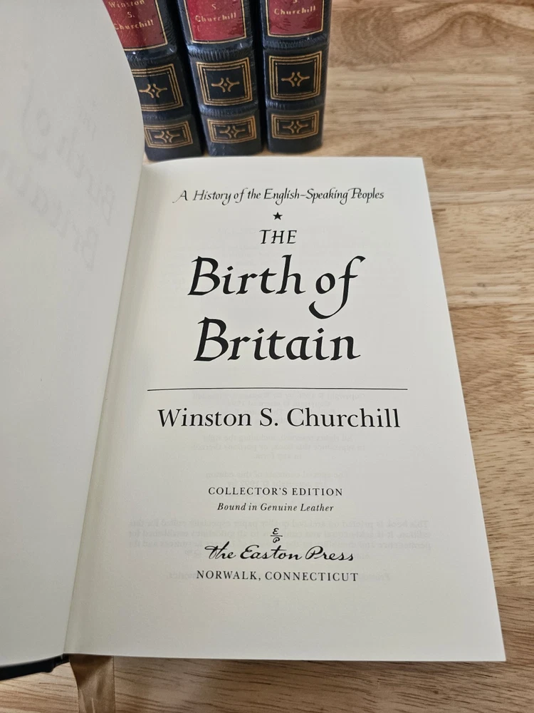 A History of the English-Speaking People's 4 volume Set by Winston S. Churchill by Easton Press 1992. The first volume is open and has "glint loss" of the gold. I've photographed all imperfections. Book does not come with a book plate, book plate is not attached to book. Other than glint loss book is in good condition. Other 3 volumes are NEW and in original shrink wrap. See all photos as this is the item you will receive.