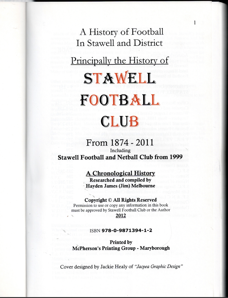 A History of The Stawell Football Club ; by Melbourne - Stawell Warriors FNC