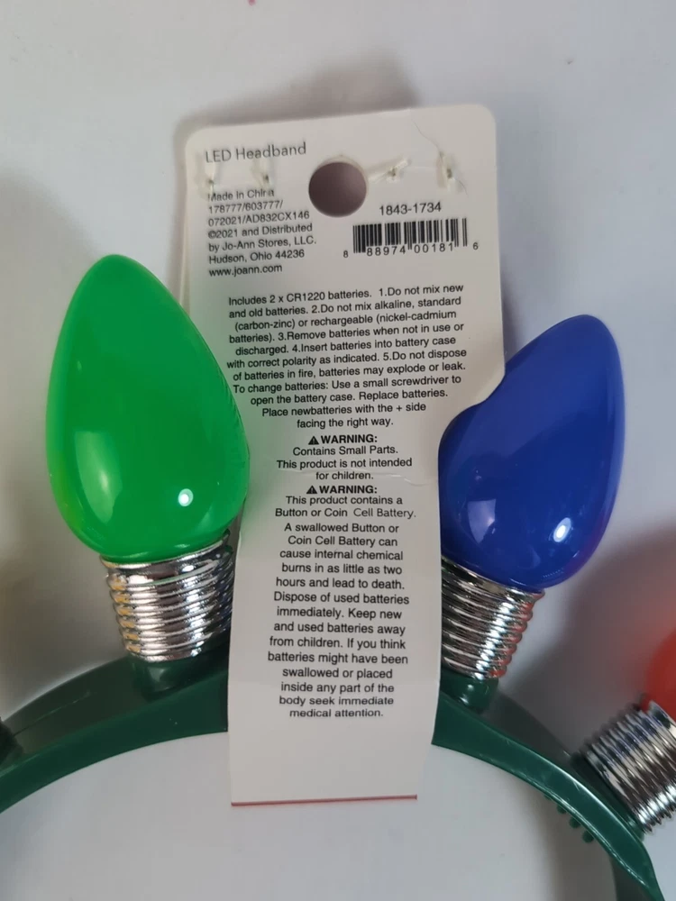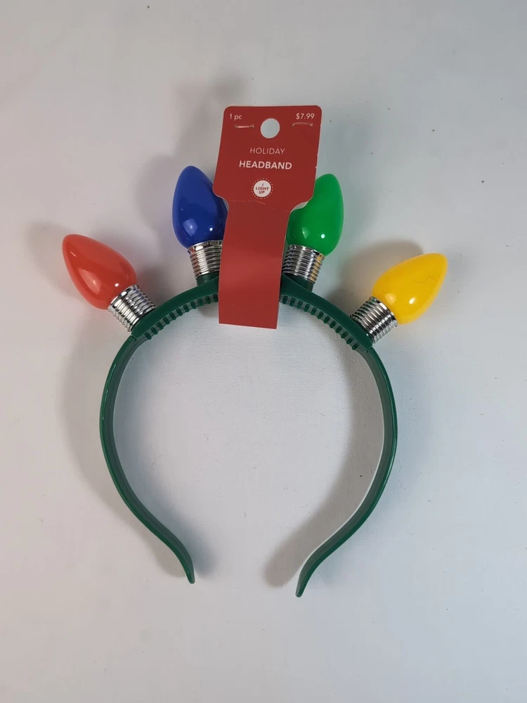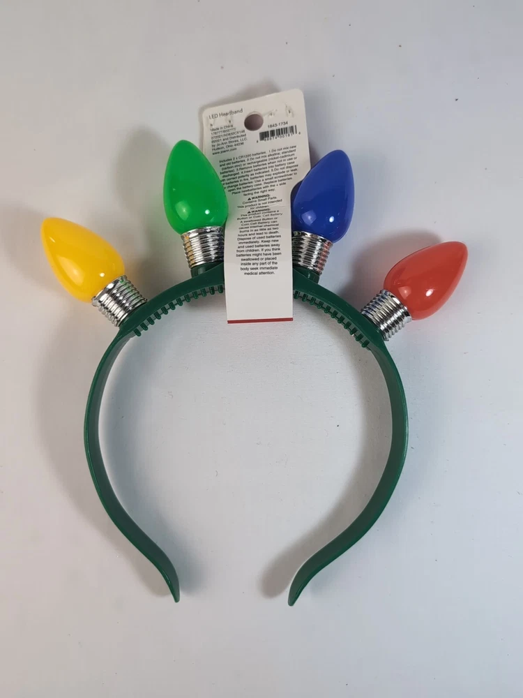 Add some holiday cheer to your home with this festive LED headband. Perfect for Christmas, this green band features large bulbs that will light up any room. The battery-powered headband is made of durable plastic and is sure to last through many holiday seasons. Use it as a decoration or wear it as a headband to add a touch of holiday spirit to your outfit. This collectible item is a must-have for any holiday enthusiast. Get yours today and start spreading the holiday cheer!