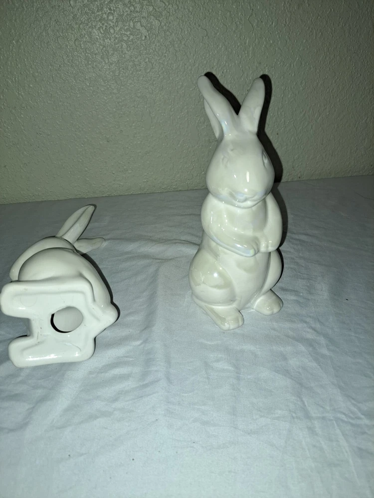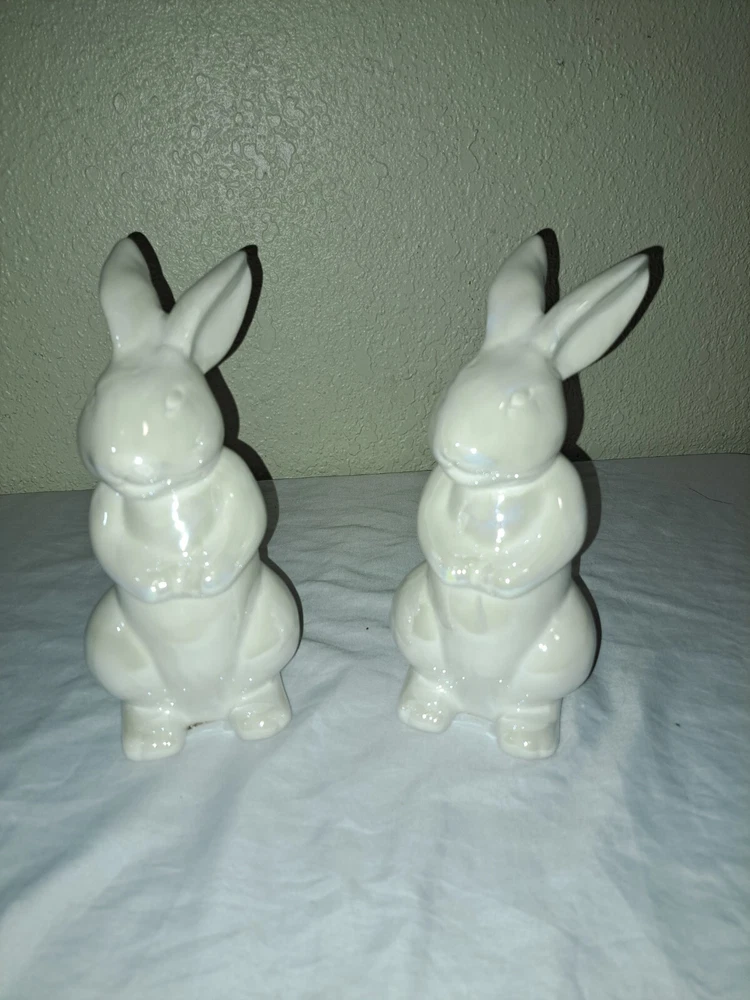 HomeA Lot Of 2.Ceramic White Bunny Rabbit Easter Spring Figure Decor
