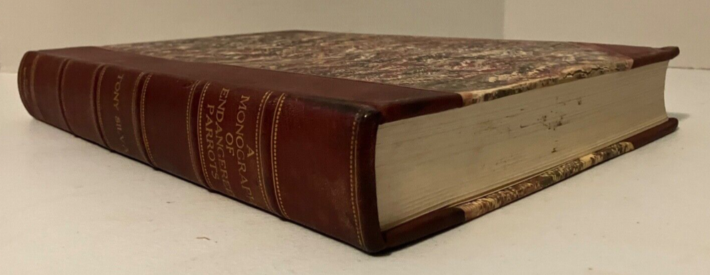 This Rare Collectors edition bound in half leather is number 9 of 200 signed by both the author and illustrations. The Cuban-born Silva is an expert on aviculture and parrots in particular. He was curator of birds at Loro Parque, Tenerife, Canary Islands when he penned this authoritative reference work, adorned with Gracia Bennish's soft imagery.