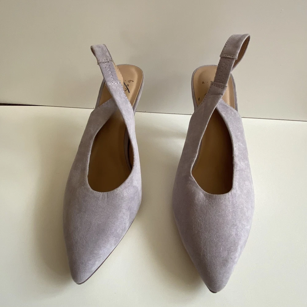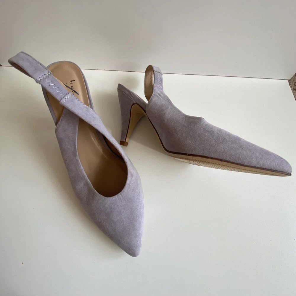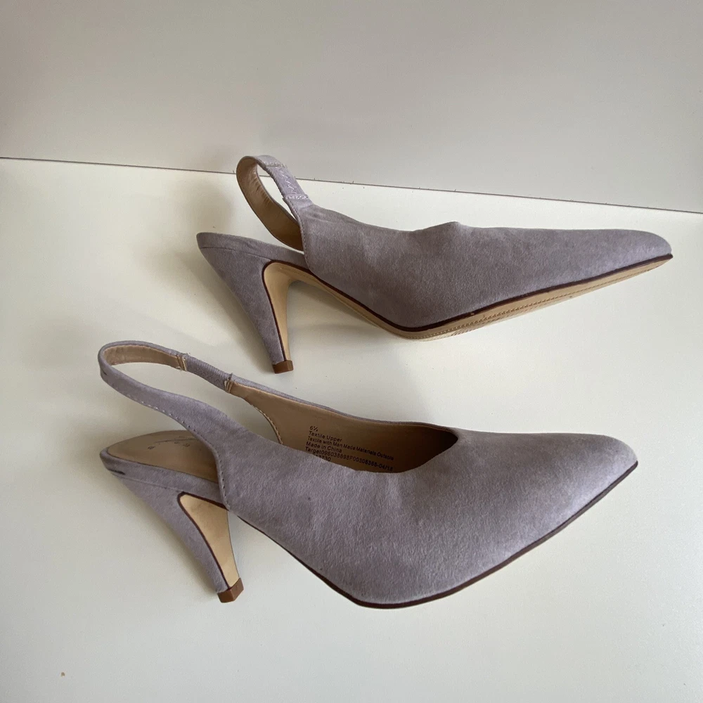 A New Day Wide Width Sling Back Microsuede High Vamp Heeled Pumps Shoe size 6.5. Shoes are in excellent condition Size 6.5 Color Lilac Fast Shipping Offers are Welcome