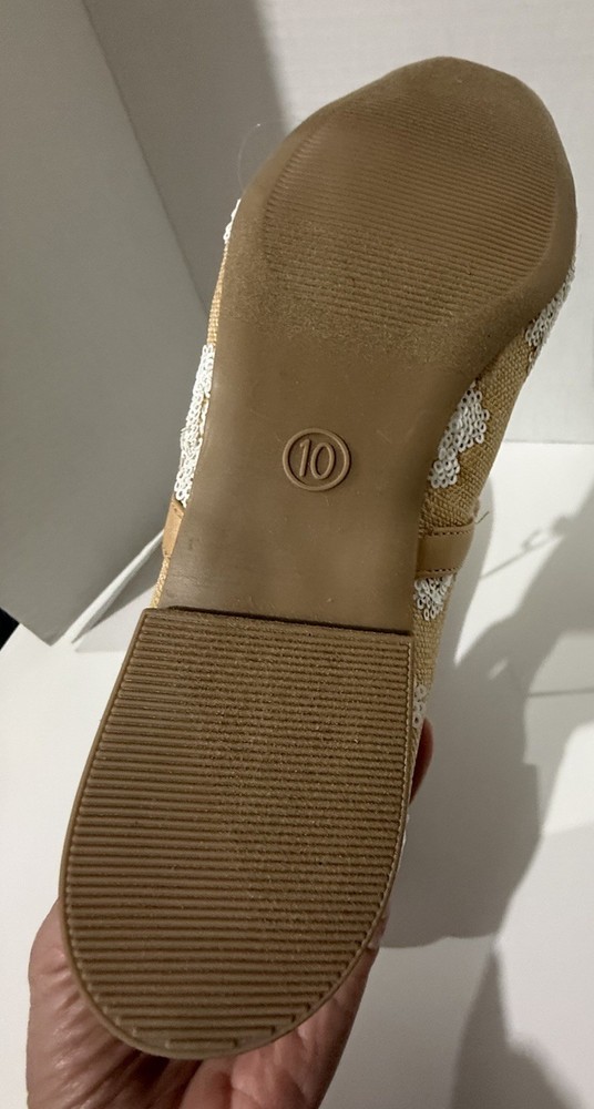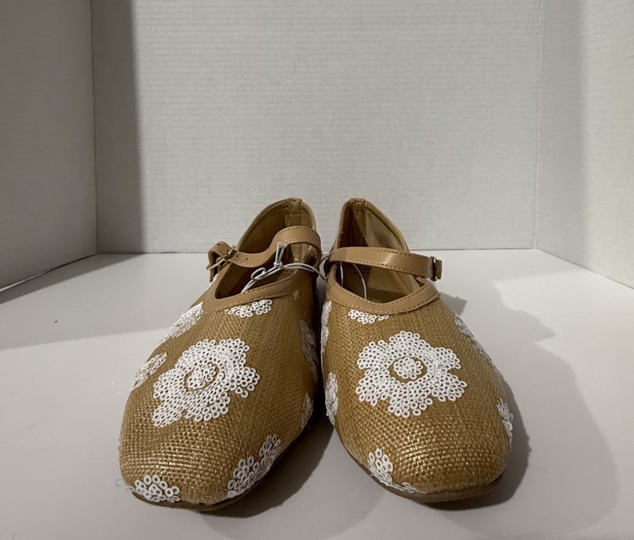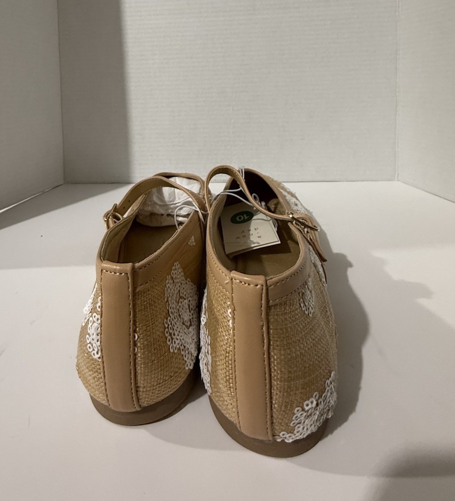 The A New Day tan white floral Mary Jane flats in size 10 are a stylish and comfortable choice for women. These flats feature a feminine floral pattern with a white color, perfect for adding a touch of spring to any outfit. The Mary Jane style, synthetic upper material, and flat sole make these shoes both trendy and practical for everyday wear. Whether for work or play, these A New Day flats are sure to be a versatile addition to any wardrobe.