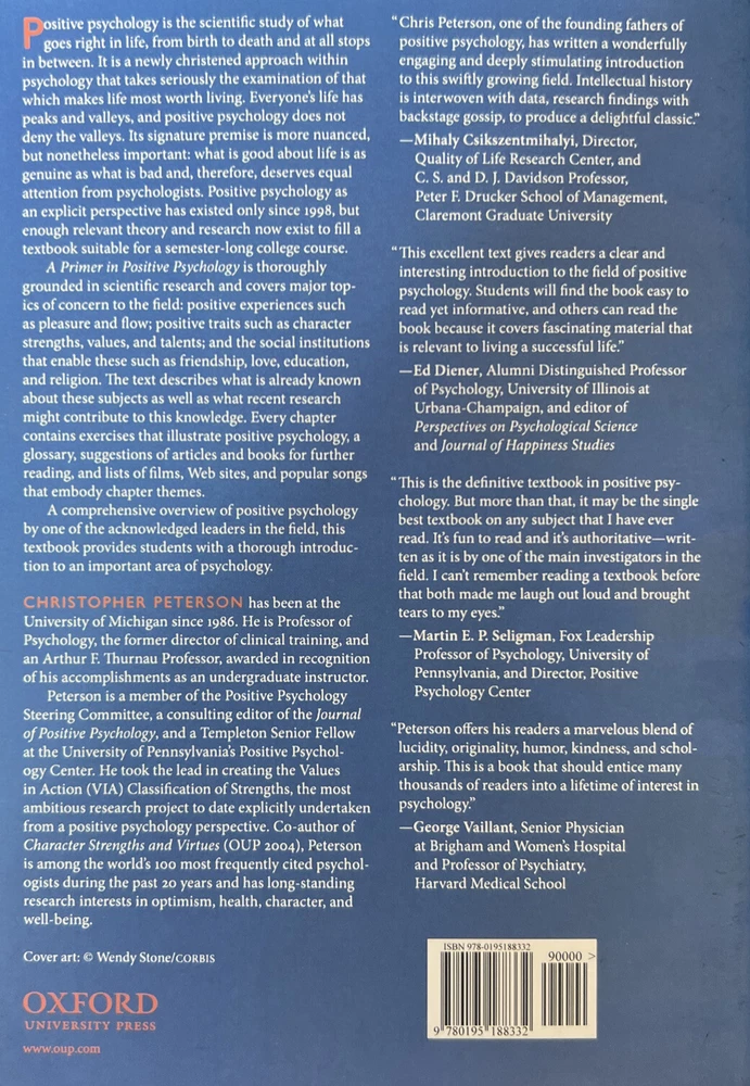 A Primer in Positive Psychology - Christopher Peterson Book - Same Day Postage*. Condition is Like New Dispatched Fast & Free With Same Day 1st Class Royal Mail Postage* Before 3pm Monday to Friday and Before 11am Saturday Morning