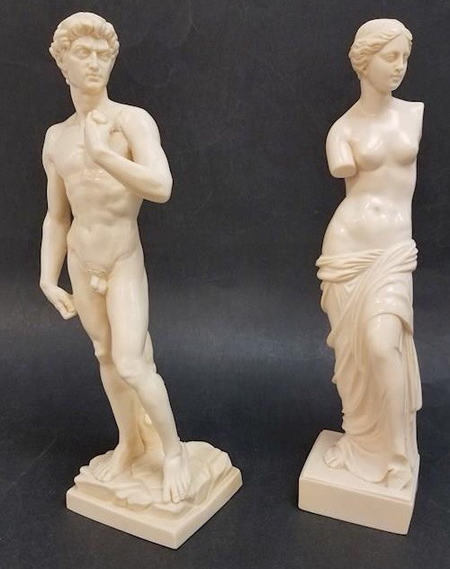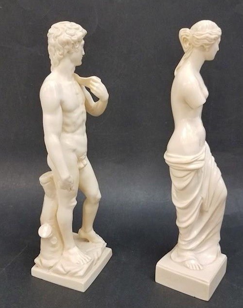 Crafted with meticulous attention to detail, the A. Santini Classic Figure Statues capture the essence of renowned artistic masterpieces, such as Michelangelo's David and the Venus de Milo. These medium-sized sculptures, designed in a figurative art style, bring a touch of timeless beauty to any space. The statuettes are rendered in a high-quality resin material and boast a limited edition status, emphasizing their exclusivity. Originating from Italy, a country synonymous with artistic innovation, these pieces reflect a contemporary take on classic themes, making them a meaningful addition to any art collection or as standalone statement pieces. In other words, they rock!