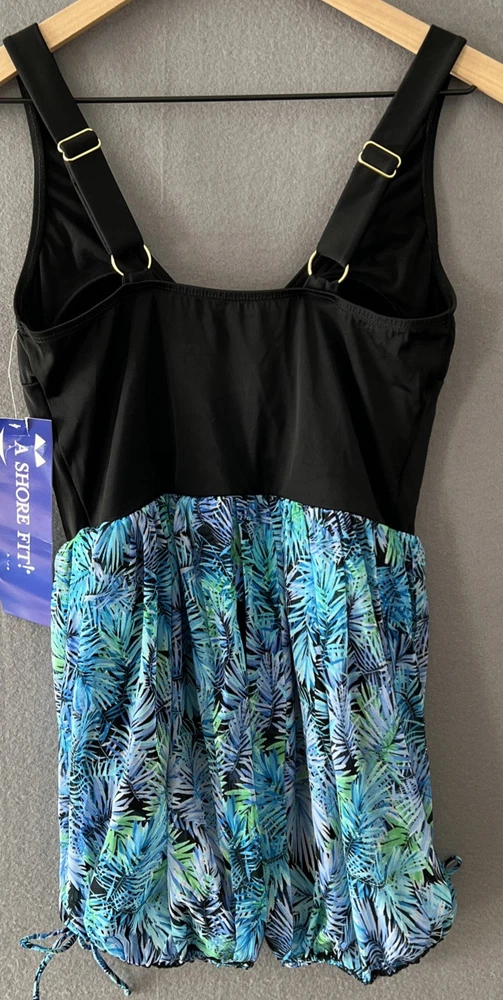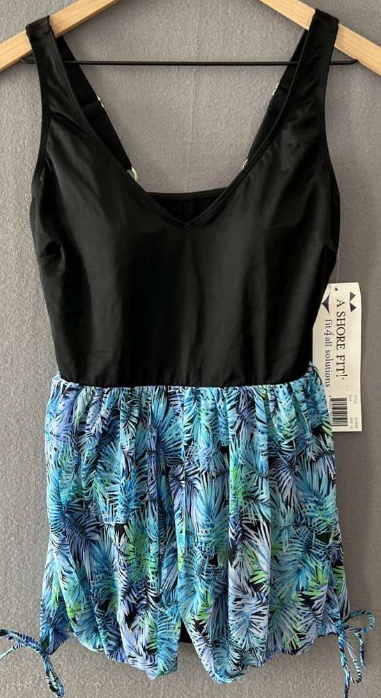 Swim Top Style: Tank Number of Pieces: 1 piece Theme: Beach Pattern: Floral Size: 12 Size Type: Plus Color: Blue Swim Bottom Style: Swim Skirt Brand: A Shore Fit! Accents: Strap Features: Adjustable Strap, Built-In Bra, Stretch Garment Care: Hand Wash Only Material: Nylon, Spandex Vintage: No Type: One Piece Department: Women