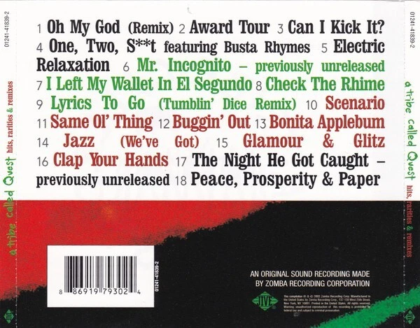 Artist: Tribe Called Quest Format: CD Duration: Album Modified Item: No Record Label: Sony Special Product, SSP Title: Hits Rarities & Remixes Genre: Soul/R&B & Soul Release Year: 2016 UPC: 0886919793123 Custom Bundle: No gtin13: 0886919793123 Release Title: Hits Rarities & Remixes Type: Album Album Name: Hits Rarities & Remixes