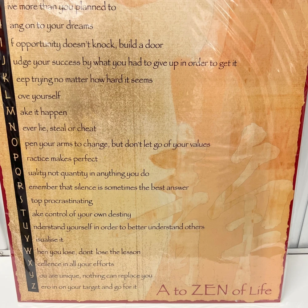 A to Zen Live One Day At A Time Dalai Lama Motivational Cool Wall Decor Art Print Measures: 24inch H X 36inch L The new poster is inside a plastic protector. It has some minor creases at the bottom, but overall it's in good condition. General Safety Warning : intended for Adult Collectors. Products may contain sharp points, small parts, choking hazards, and other elements not suitable for children under 16 years old