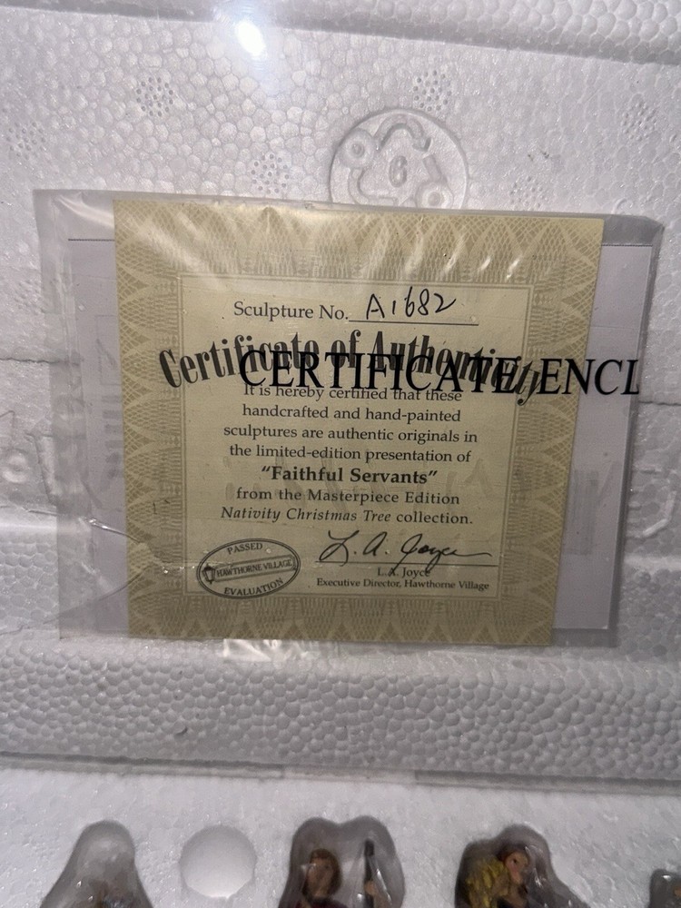 This Hawthorne Village figure, titled "Faithful Servants," is a beautiful addition to any Christmas village collection. Crafted with intricate details, this original piece depicts a loyal servant holding a tray for the village's inhabitants. The figure is part of the Hawthorne Village brand, known for their high-quality collectibles. The piece is perfect for adults and was manufactured in 2006. It falls under the category of Collectibles, specifically Holiday & Seasonal, and is a must-have for anyone who loves villages and houses. Add this unique and original piece to your collection today.