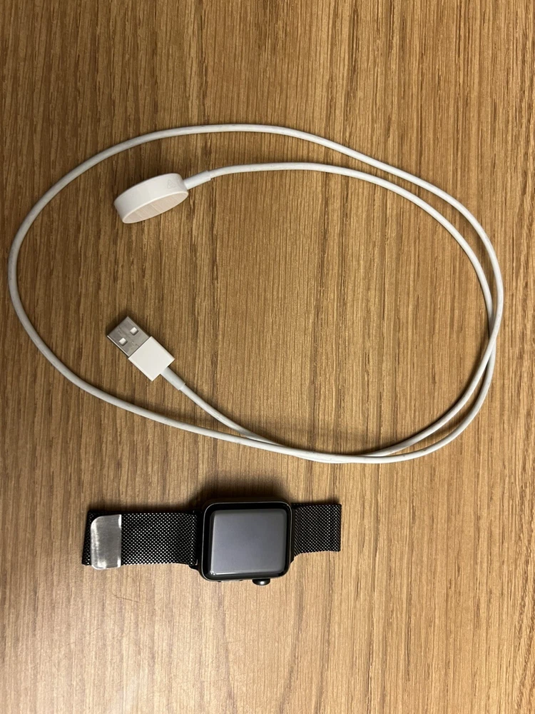 Apple Watch Series 3 LTE Cellular 38mm Space Gray with Milanese Loop & Charger by Apple. This smart watch features 4G and 3G data capabilities, an accelerometer, and 8GB storage capacity. It runs on Apple Watch OS and is compatible with iOS devices. The case is made of aluminum, and the Milanese band is black aluminum. Slick and stylish sure to draw the crowd’s attention. Perfect for anyone looking to get a gift or upgrade their current phone set up! Will also include a charger cable. Buyer adds flat fee for shipping and handling