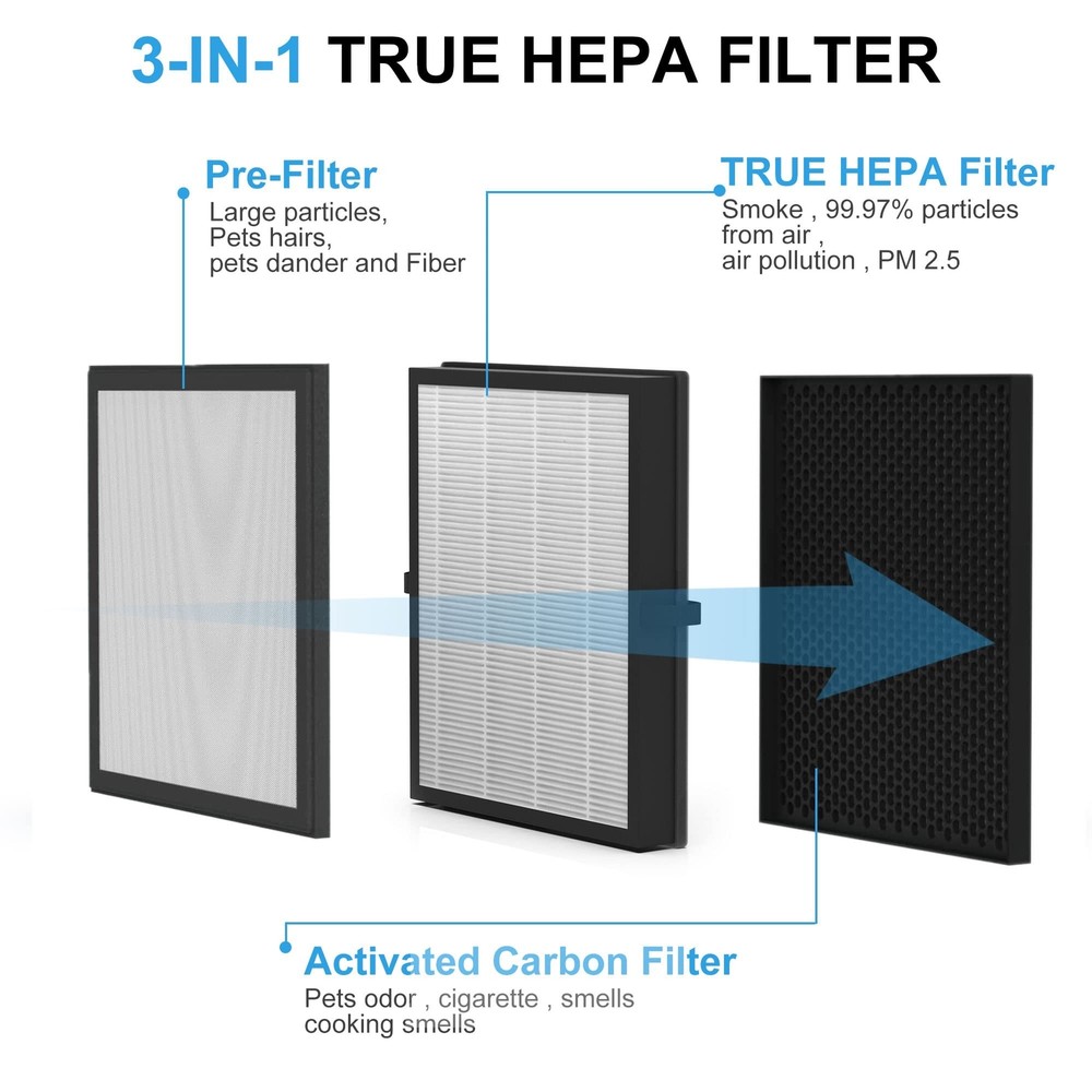 A3 H13 HEPA Replacement Filter, Compatible with VEWIOR A3 Air Purifier, 2 Pack - Buy Now with Fast Shipping! A3 H13 HEPA Replacement Filter, Compatible with VEWIOR A3 Air Purifier, 2 Pack Product Details Brand: Vegebe Material: Polypropylene Product Dimensions: 10.6"L x 10.5"W x 1.1"Th MERV Rating: 13 Compatible Devices: Vegebe Filter, Fit for VEWIOR A3 Air Purifier Item Weight: 0.8 Kilograms Number of Items: 2 Manufacturer: Vegebe Unit Count: 2.0 Count Brand Name: Vegebe Model Info: A3 Filter - 2 Pack Item Weight: 1.76 pounds Product Dimensions: 10.6 x 10.5 x 1.1 inches Item model number: A3 Filter - 2 Pack Part Number: Verwior A3 Filter - 2 Pack Compatible Device: Vegebe Filter, Fit for VEWIOR A3 Air Purifier Material Type: Polypropylene Included Components: A3 H13 HEPA Filter - 2 Pack Batteries Included?: No Batteries Required?: No Date First Available: January 15, 2023 Key Features ✅ Compatible: Vegebe A3 Replacement Filter, Compatible with VEWIOR A3 Air Purifier. Exclusively designed to maintain its peak performance. 2 Pack. ✅ 3-in-1 H13 True HEPA Filter: A3 Filter features a 3-stage filtration design: Pre-Filter Captures Hair, Pet Dander and Fiber; H13 TRUE HEPA Filter Captures Smoke, Dust; Activated Carbon Filter Quickly captures and neutralizes Bad Smells, Pet Odor and VOC to freshen the air quality. ✅ Filtration Performance: A3 Filter Replacement uses H13 True HEPA PP electrostatic electret melt-blown filter. Filters out 99.97% of particles as small as 0.3 microns and air pollution PM 2.5 (particulate matter). ✅ Filter Life: For best performance, recommended filter replacements once every 3-6 months, will depend on the environmental air quality around you. ✅ Reliable: Our responsive customer service team is fully committed to ensuring you have the best experience possible! If you have any questions or concerns, please contact us and we will answer ASAP! Product Description A3 Replacement Filter - 3-in-1 H13 True HEPA - 2 Pack Vegebe A3 Filter Exclusively designed fit for A3 Air Purifiers to maintain its peak performance. Storage: It should be stored in a dry location protected against moisture. Important: A3 Filter is sealed to preserve shelf life. Please remove the plastic packaging of the new filters before placing them into air purifier. Reliable: Our responsive customer service team is fully committed to ensuring you have the best experience possible! If you have any questions or concerns, please contact us and we will answer ASAP! Package Contents: 2 x A3 3-in-1 H13 True HEPA Filter element