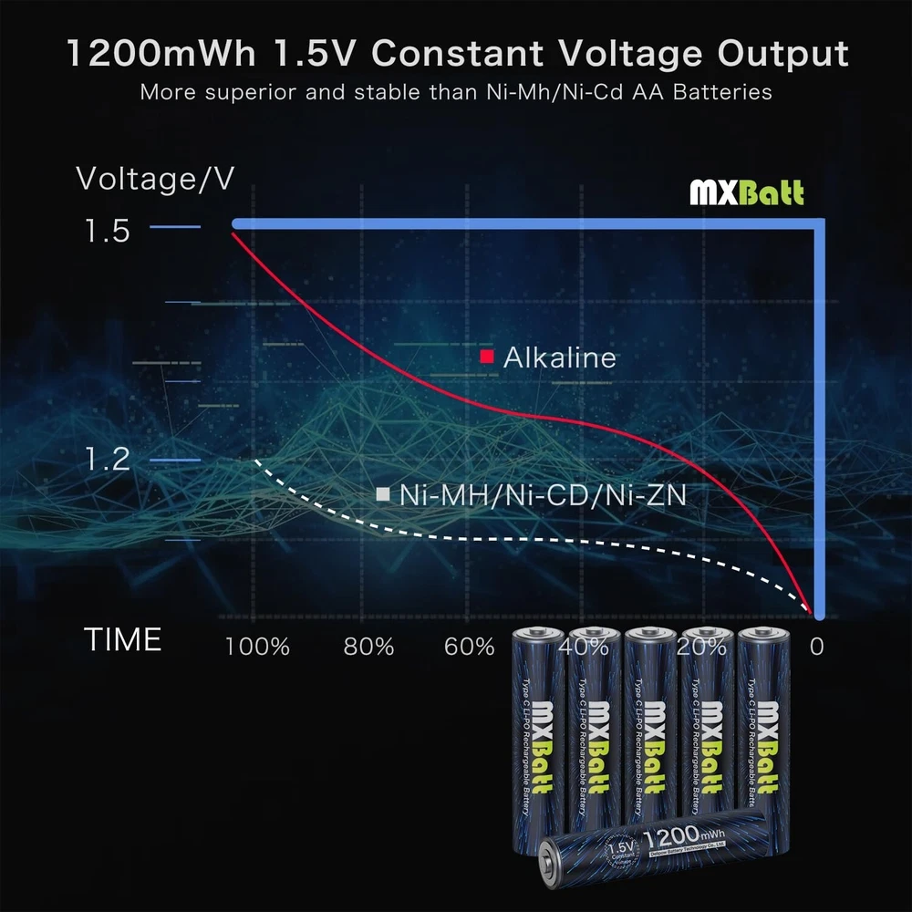 AAA Rechargeable Battery USB C 1.5V 1200mWh High Capacity,Rechargeable AAA Batteries Lithium 6-Pack with USB C Port Cable 1500 Cycles Product Details Size: LD-USB-6AAA Brand: MXBatt UPC: 753775359995 EAN: 0753775359995 MPN: Does not apply Number of Batteries: 6 AAA batteries required. Brand: MXBatt Battery Cell Composition: Lithium Polymer Compatible Phone Models: NO Recommended Uses For Product: Flashlights, Camera, Clock Package Dimensions: 4.25 x 3.86 x 0.87 inches Item Weight: 2.39 ounces Batteries: 6 AAA batteries required. Date First Available: July 18, 2023 Manufacturer: Delipow Country of Origin: China 1200mWh AAA Rechargeable Batteries: MXBatt aaa rechargeable battery usb c 1200mWh high capacity can offer at least 30% longer time than other AAA batteries, All of MXBatt rechargeable batteries are pre-charged, ready to use once received Direct USB-C Charging: New design with USB C Port on the AAA batteries, easily to charge, and they are powered up quickly when you are on the go, at work, home or traveling 1.5V Constant Voltage : The MXBatt rechargeable aaa batteries lithium ion are suitable for equipment with strict voltage devices. Charged AA lithium batteries maintain 1.5V under 100% to 0% capacitance Low Self Discharge:The use of MXBatt aaa rechargeable battery 1.5V can be charged 1500 times, energy saving fully charged can be stored for one and two months Attentive Service : If you have problem with our product , please feel free to contact us , we will reply you in 24 hours and provide you a 100% satisfactory solution