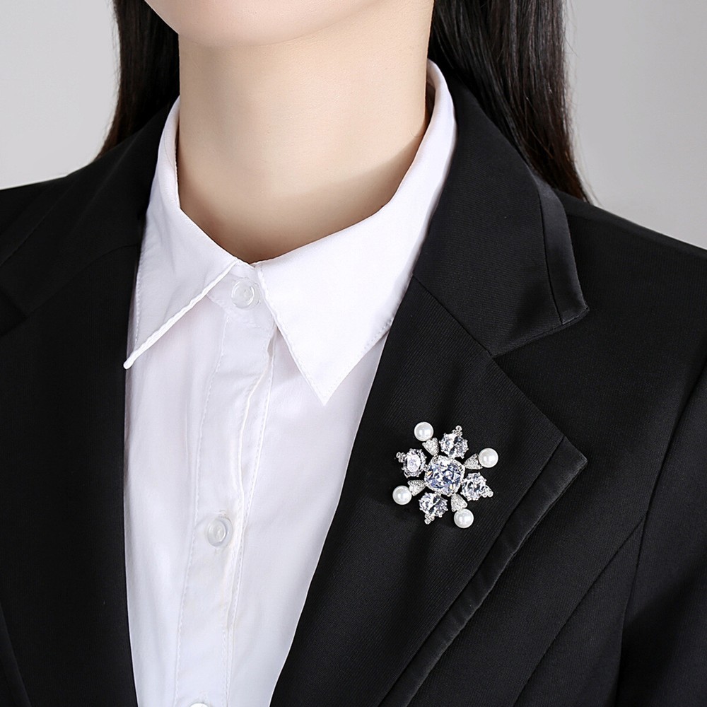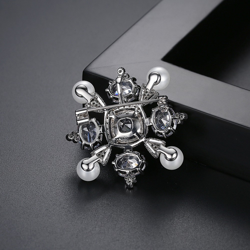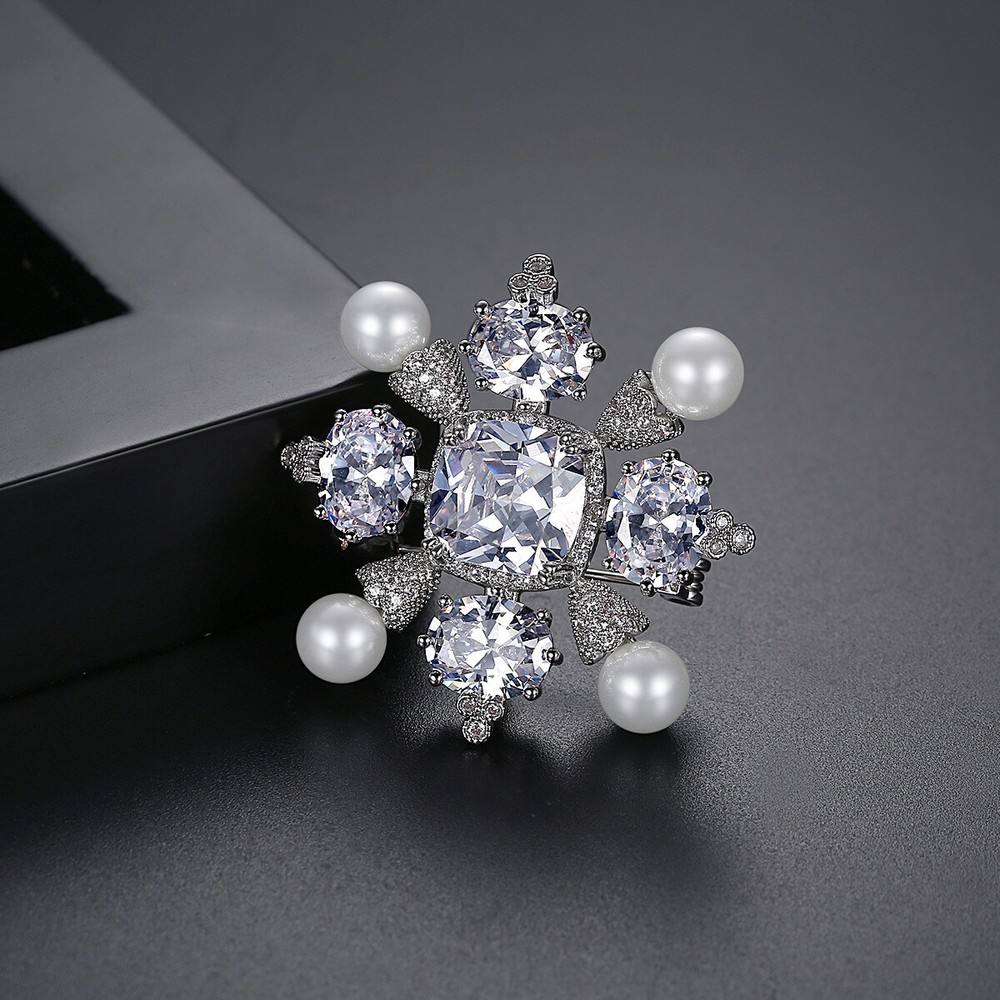 AAA Zircon Flower French Pearl Brooch Gold Plated Women's Jewelry
