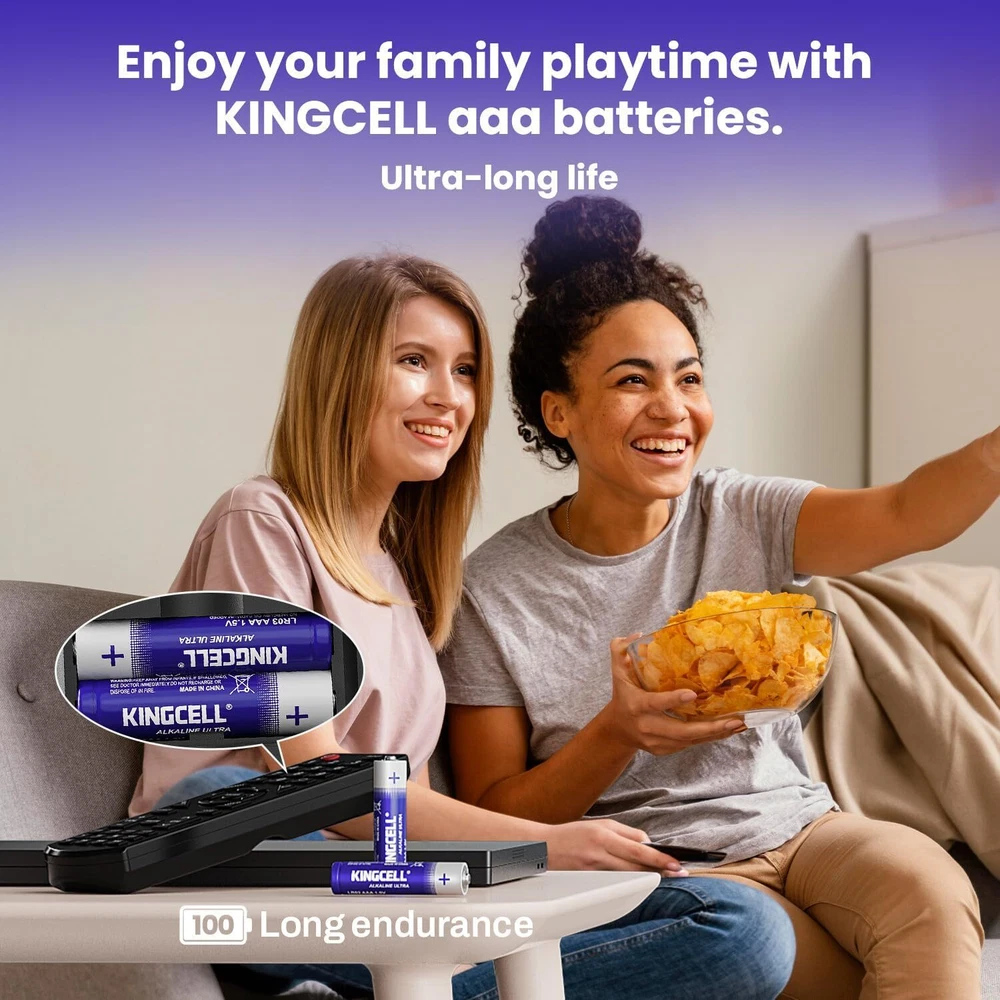【KINGCELL 36 Pack AAA Batteries】Bundled in a recloseable package for easy storage and organization.Meeting the daily needs of families. 【Dual Leakproof Technology】Multi-seal anti-leakage design can effectively prevent leakage, don‘t have to worry about corrosion damage to your equipment, has a strong protective effect 【10-Year Shelf Life】KINGCELL AAA Batteries High performance battery technology can make KINGCELL maintain power for up to 10 years in proper storage. 【Ultra Long-Lasting】Higher capacity and more cost-effective than regular batteries.No need to replace batteries frequently 【Widely Used】KINGCELL AAA batteries are perfect for various devices, including remotes, flashlights, kid toys, wireless keyboards, and more. 【Environmentally Friendly】Free from harmful substances such as mercury and cadmium, making them safe for your family and the environment. By choosing KINGCELL Batteries, you're making a sustainable choice while enjoying reliable power.