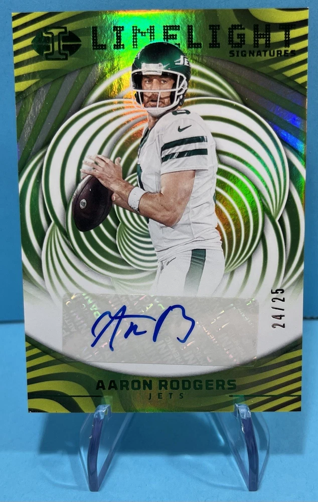 AARON RODGERS 2023 ILLUSIONS LIMELIGHT SIGNATURES GREEN AUTO # 24/25. Condition is Ungraded. Shipped with USPS First Class.