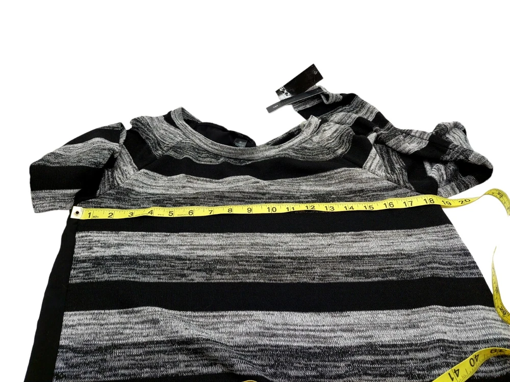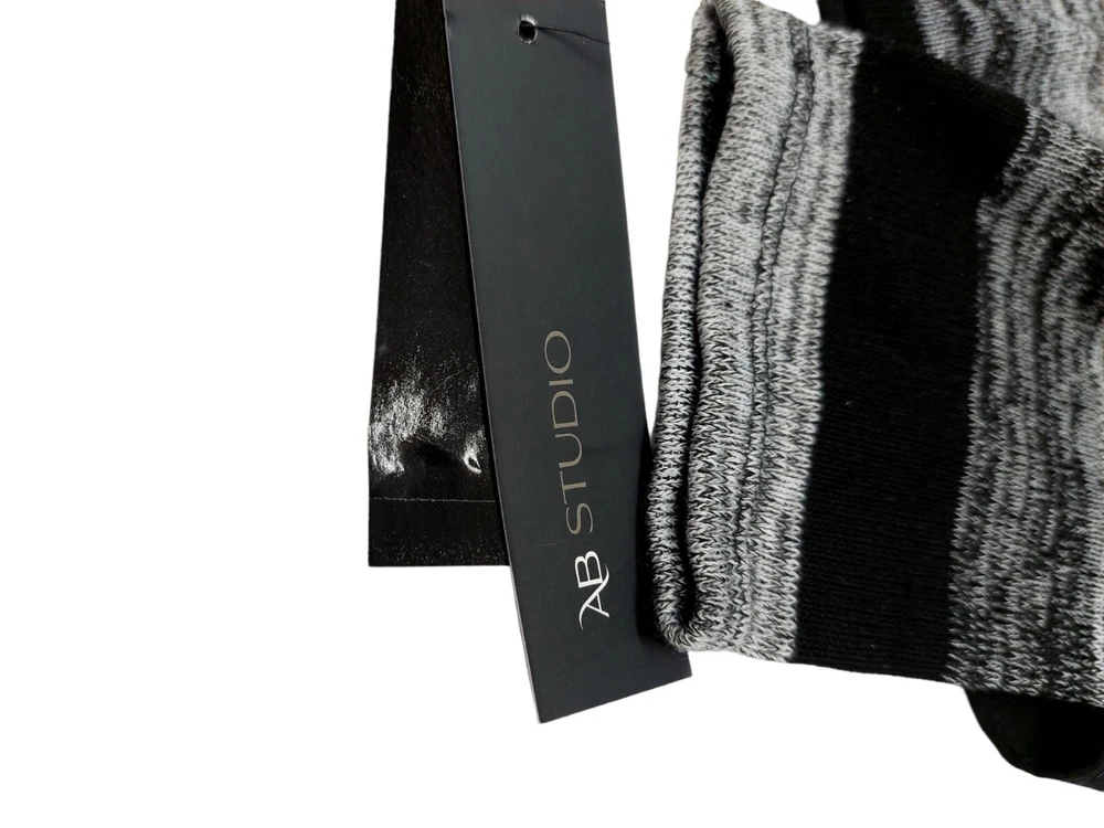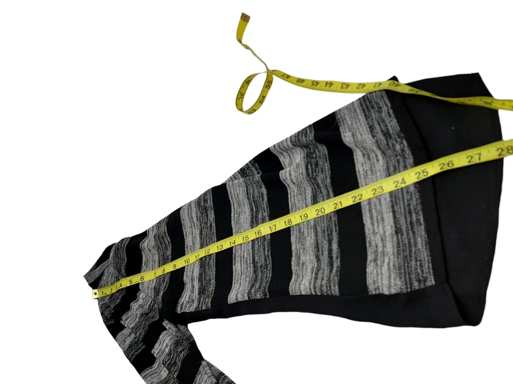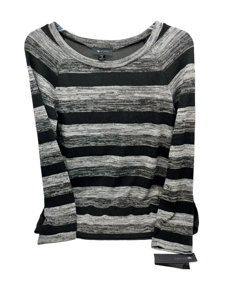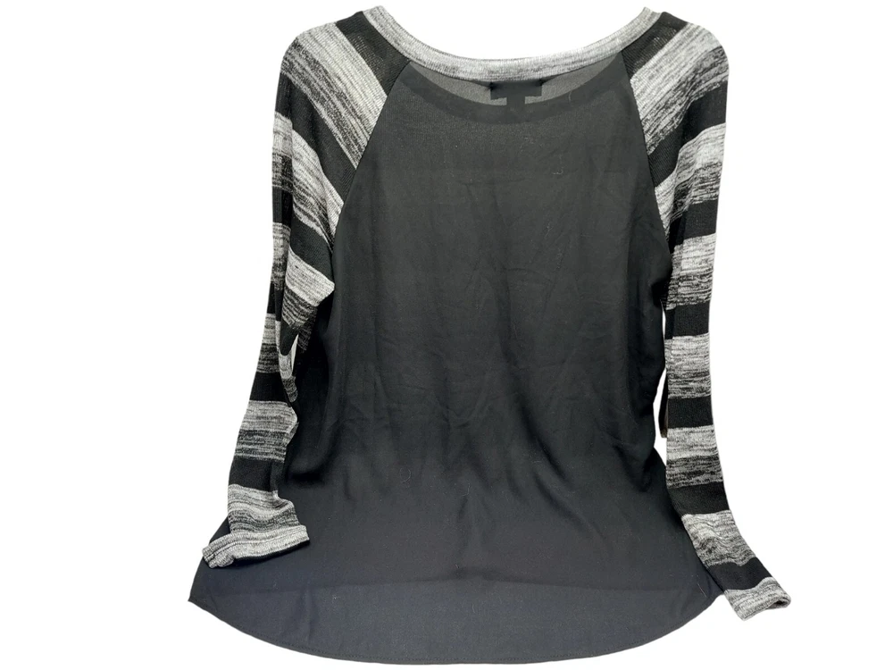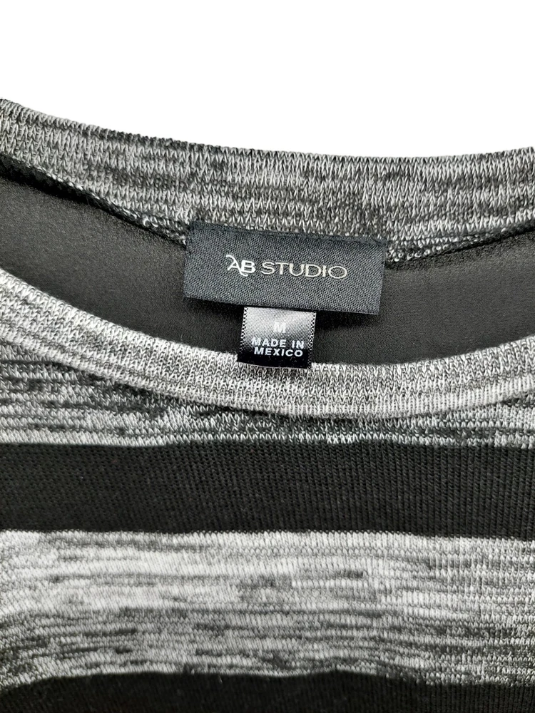 AB Studio Ladies Black Grey Striped Sweater Sheer Back Size Medium High low