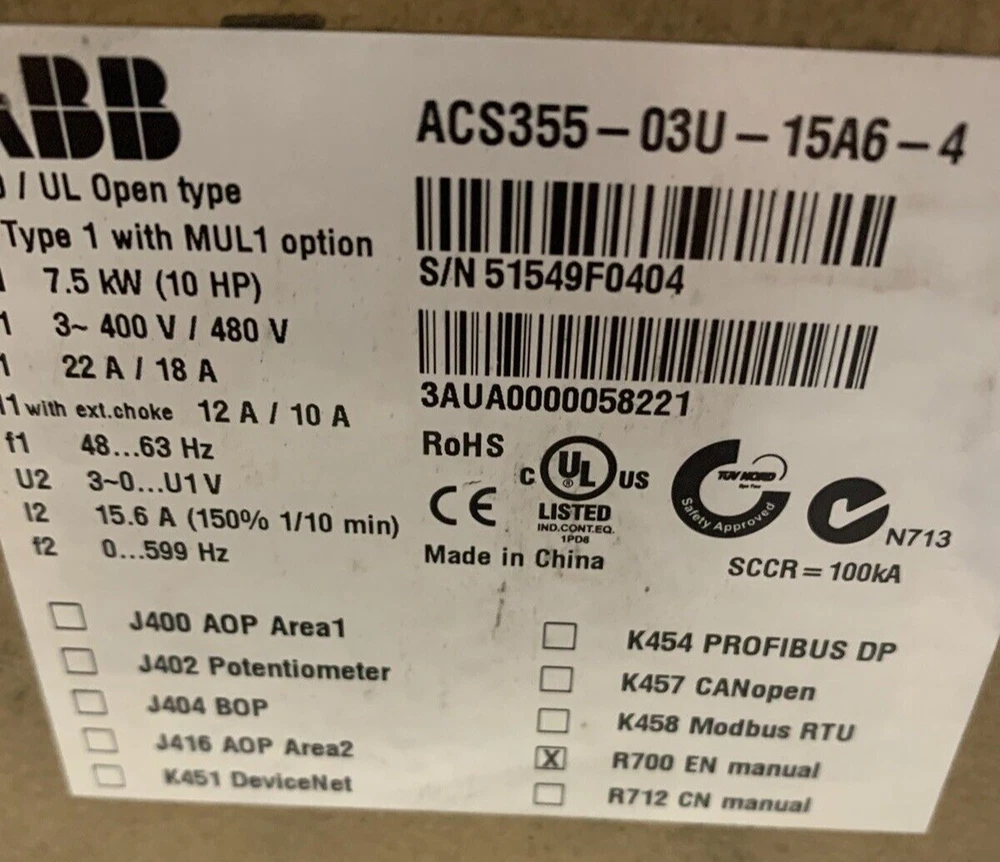 ABB ACS355-03U-15A6-4 DRIVE ACS35503U15A64 NEW IN BOX No Keypad