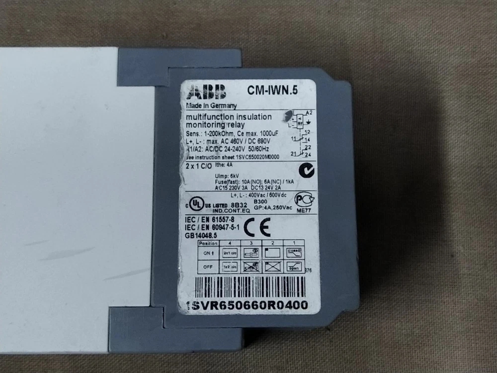 We are pleased to offer ABB CM-IWN.5 MULTIFUNCTION INSULATION MONITORING RELAY 1SVR650660R0400 Product Detail: ABB CM-IWN.5 MULTIFUNCTION INSULATION MONITORING RELAY 1SVR650660R0400 MODEL: CM-IWN.5 PART NO: 1SVR650660R0400 TYPE: MULTIFUNCTION INSULATION MONITORING RELAY MADE IN GERMANY Shipment processing time: All orders are processed within 1-2 business days. Orders are not shipped or delivered on weekends or holidays. Shipment confirmation & Order tracking: You will receive a Shipment Confirmation email once your order has shipped containing your tracking number(s). The tracking number will be active within 24 hours. Customs, Duties and Taxes: We are not responsible for any customs and taxes applied to your order. All fees imposed during or after shipping are the responsibility of the customer (tariffs, taxes, etc.). Damages: In case of damage or lost of shipment during transit, We will investigate the matter and provide the satisfactory resolution. Returns Policy: We offer return or exchange of ordered item up to 30 days of receipt of goods in subject to certain condition. In case of damaged goods we shall offer the replacement or refund for the ordered item. If you require any more details, request you to send us the direct message through eBay for early resolution. Thanks