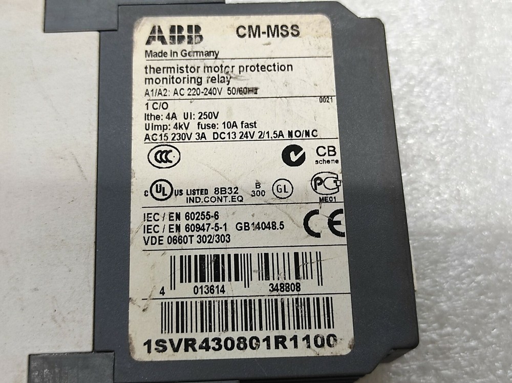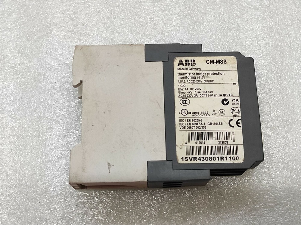 We are pleased to offer ABB CM-MSS THERMISTOR MOTOR PROTECTION MONITORING RELAY 1SVR430801R1100 Product Detail: ABB CM-MSS THERMISTOR MOTOR PROTECTION MONITORING RELAY 1SVR430801R1100 MODEL: CM-MSS PART NO: 1SVR430801R1100 Shipment processing time: All orders are processed within 1-2 business days. Orders are not shipped or delivered on weekends or holidays. Shipment confirmation & Order tracking: You will receive a Shipment Confirmation email once your order has shipped containing your tracking number(s). The tracking number will be active within 24 hours. Customs, Duties and Taxes: We are not responsible for any customs and taxes applied to your order. All fees imposed during or after shipping are the responsibility of the customer (tariffs, taxes, etc.). Damages: In case of damage or lost of shipment during transit, We will investigate the matter and provide the satisfactory resolution. Returns Policy: We offer return or exchange of ordered item up to 30 days of receipt of goods in subject to certain condition. In case of damaged goods we shall offer the replacement or refund for the ordered item. If you require any more details, request you to send us the direct message through eBay for early resolution. Thanks