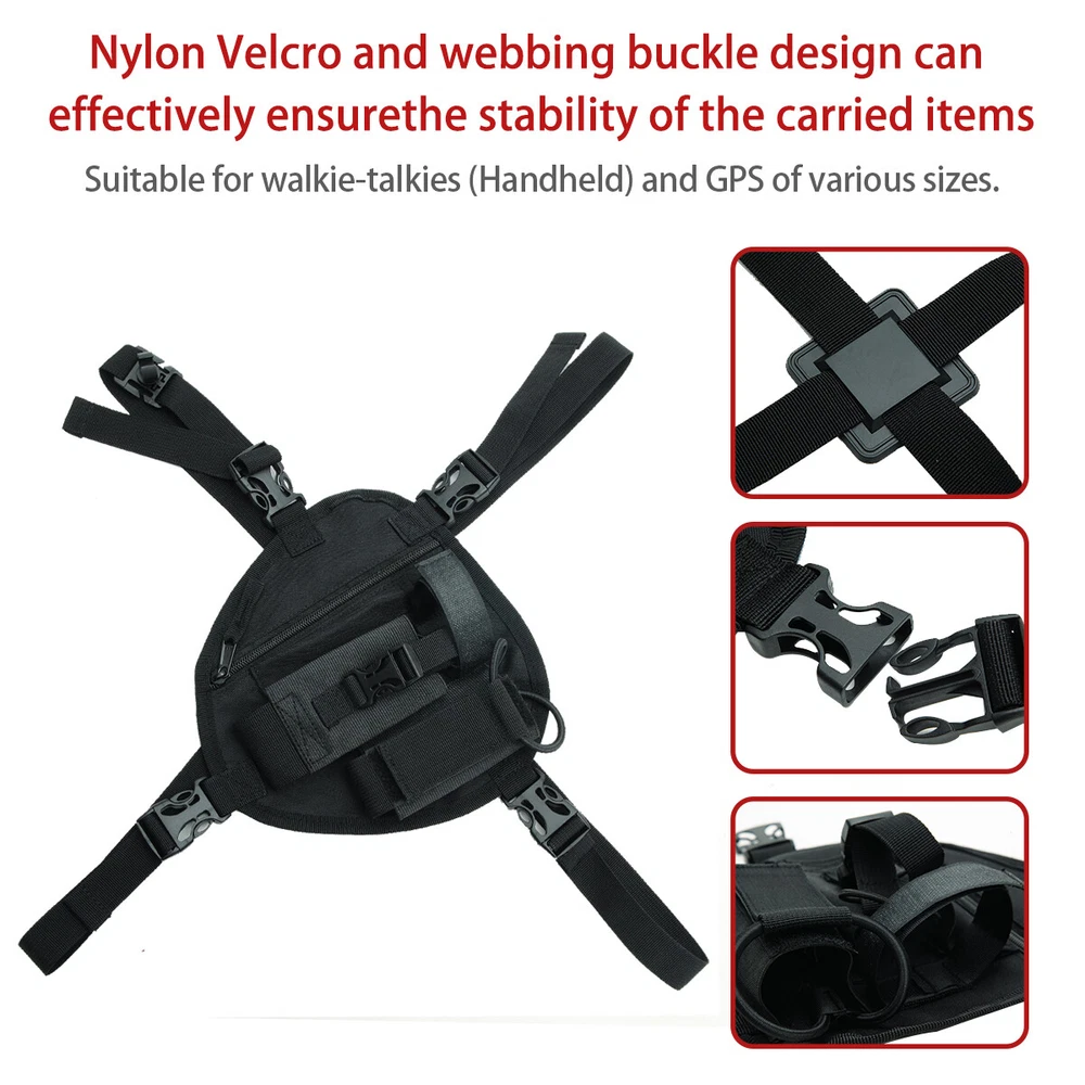 ABBREE Radio Chest Harness Holder Adjustable Shoulder Chest Front Pack Two Way Radio Pouch Holster Vest Rig Walkie Talkie Case 【High Quality and Unique Design】Made of durable nylon material, waterproof, dirt-resistant and easy to clean,It has multi ple pockets for placing walkie-talkies or other accessories to free your hands. 【Easy To Carry And Use】Adjustable elastic and soft shoulder straps, leave your shoulders relax, suitable for both men and women. 【Apply To Multiple Occasions】With Two Radio Pockets,One Large Zippered Pockets for First Aid Supplies,Charger etc;It’s suitable for walkie-talkies (handsets) and GPS of various sizes. In actual use, these pockets can also hold electronic devices such as mobile phones and MP3 players;Applicable occasions: police, production workshop, construction sites, such as a dangerous place, convenient carrying walkie-talkie equipment and a variety of operating tools. 【Highly Breathable】It takes up little space on the back and is highly breathable.Velcro and webbing buckle design can effectively ensure the stability of carrying items. 【 Multi-Function 】 The radio chest bag is made of durable nylon material,adjustable shoulder straps do not hurt the shoulder, suitable for both men and women. The multi-pocket zipper design is economical, beautiful and affordable. It takes up little space on the back and is highly breathable. Velcro and webbing buckle design can effectively ensure the stability of carrying items. These pockets can also hold electronic devices such as mobile phones and MP3 players. 【 Package Include 】 1 X Nylon Radios Pocket