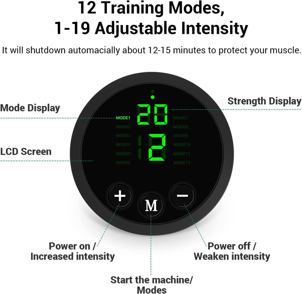 Features : Unisex for Man & Women Anywhere For home gym exercise workout training Remote control by simple button High quality Leather Material. No need extra gel sheets . 30 minutes per day, fast and easy to shape body curve, build a strong figure, Surprise Yourself!! EASY TO USE - POWER ON: Press the "+" button, the indicator lights up. press again Muscle Stimulation Belt begin to work. - POWER OFF: Press the "-" button to decrease the intensity until the blue indicator light turns off. - MODE SWITCHING:Turn on the device and press the "M" button to toggle freely between massage modes. Package - Ab Toning Remote controller - Ab Toning Belt - Extension band * 1 - Instruction Manual Tip: Our Abs workout equipment work by water, which is very economical and environmentally friendly. Two important points: one is that the irritation area must be moist, and the other is that the stimulator must be close to the skin, and there must be no gap between the stimulator and the skin, otherwise there will be discomfort and the effect will not be good. Note: 1. Do not use it when you are sleeping 2. The following people are not allowed to use the product or it may cause accidents, the problems of skin and body. -Internally transplanted electronic medical device, such as pacemakers. -Electronic medical life-support equipment such as artificial cardiopuimonary machine. -Electronic medical devices attached to the body such as electroncardiogram scanner. -Women who are pregnant or give birth to babies recently. In order to help you get in the best shape of your life, our team has designed the ultimate training device: a great choice for those looking for a convenient way to tone, strengthen and firm the abdominal area. This Abs workout equipment can build muscle and massage effect. This belt is designed for both men and women. It also comes with an adjustable strap for your size. The belt is made with solid materials. The upgraded flex belt is a necessity for anyone who wants to keep their abs toned. Abs workout equipment provides ideal workout.It is equipped with an adjustable buckle design, which make it easier to use.This new upgraded powerful dynamics provides stronger sense. Many modes can be useful for exercising the whole body with just one key operation. The Ab workout equipment is designed to help you with your six pack.Concentrating frequency conversion and professional pulse combination can achieve one-button fitness to realize warming up, exercising, relaxing, stretching. 【PACKAGE INCLUDES】-- Abs Toning Belt * 1, Remote Controller * 1, USB Charging Cable * 1, User Manual * 1.Please read instructions carefully before use. ( *DO NOT use the product if you have Allergic skin or an existing cardiac condition, implanted metal devices/screws areas of the body or suffer from epilepsy.)