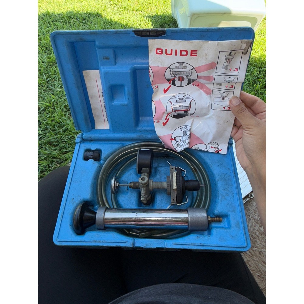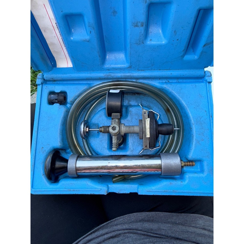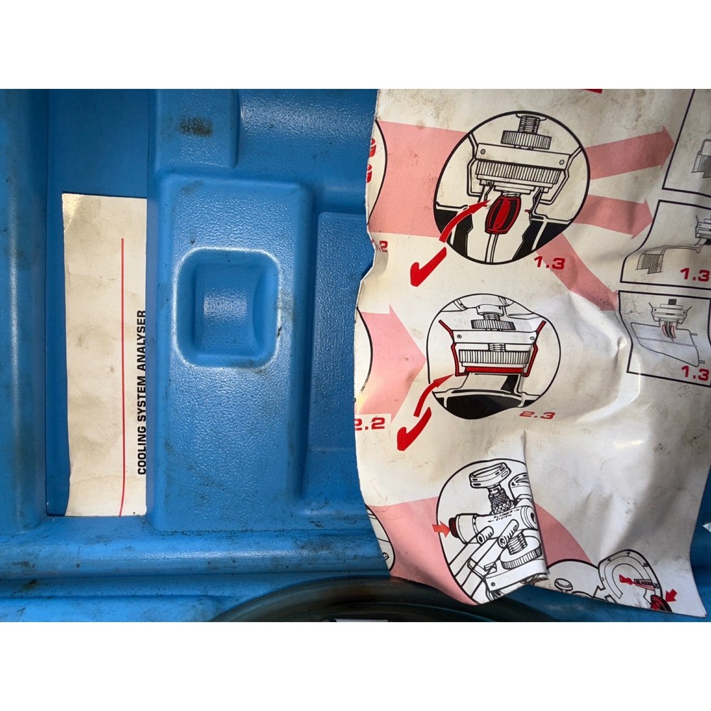THIS PRODUCT COMES AS IS-UNTESTED Unleash the power of precision diagnostics with this ABV Cooling System Analyzer Kit! This comprehensive kit empowers you to efficiently assess and troubleshoot cooling system issues in automotive applications. The kit includes a pressure testing pump, hose, and various adapters, all neatly organized in a durable blue carrying case. The included guide provides clear instructions for accurate testing. This kit is perfect for professional mechanics, DIY enthusiasts, or anyone looking to maintain their vehicle's cooling system. Ideal for use in your home garage, auto repair shop, or even on the go for roadside assistance.
