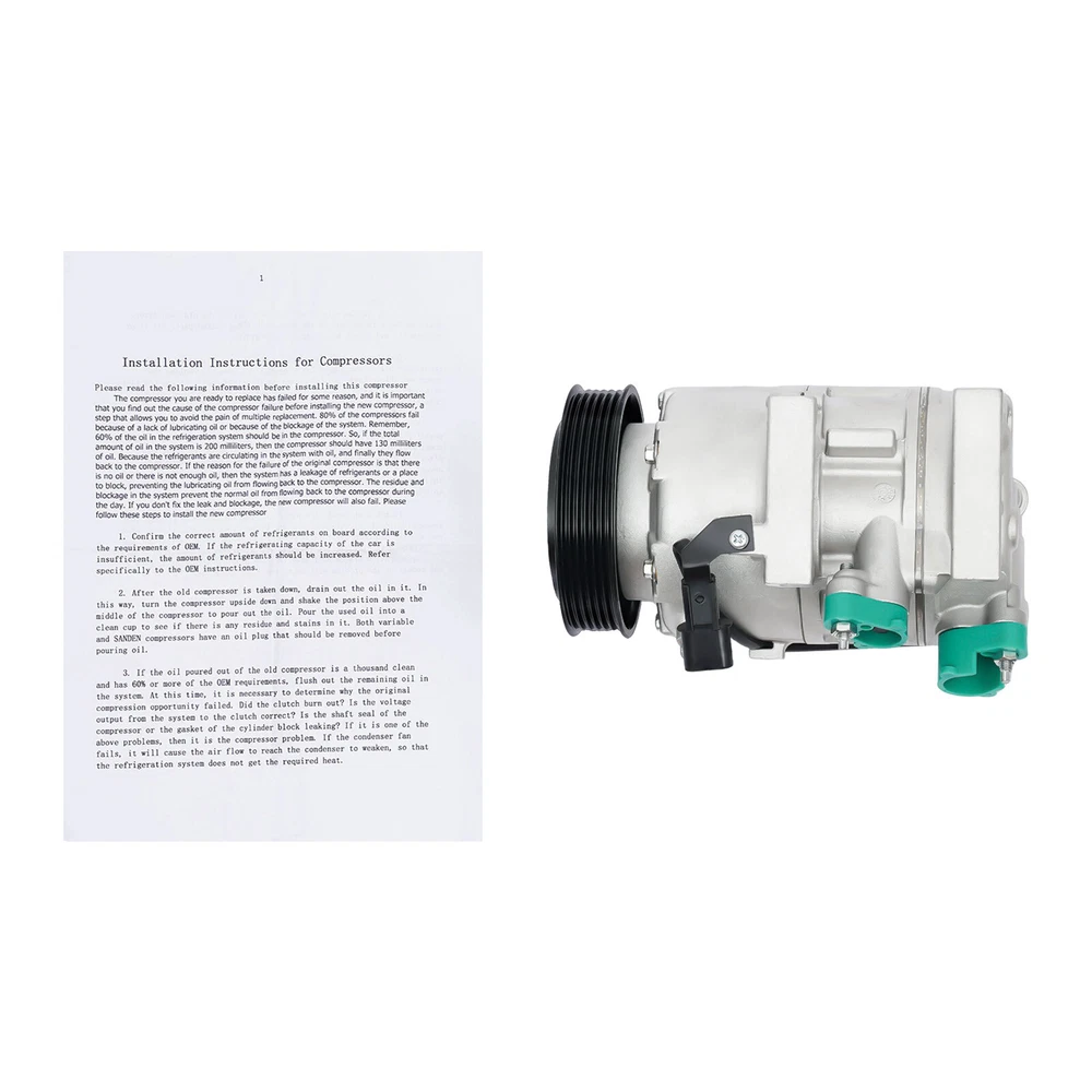 A/C AC Compressor w/ Clutch For 2012-2015 Kia Optima Hyundai Sonata 2.0L 2.4L A/C AC Compressor w/ Clutch For 2012-2015 Kia Optima Hyundai Sonata 2.0L 2.4L Specification & Feature: *According to the original factory specifications. *Perfect match for the original car. *Stable characteristics, high reliability. *Replace OEM Number: Four Seasons : 177328 Four Seasons : 178328 Global Parts Distributors :5512958 Global Parts Distributors :6512958 Global Parts Distributors :7512958 Global Parts Distributors :7512961 For Hyundai/For KIA :977013V110 For Hyundai/For KIA :977013V110RU Omega :2021816 Ranshu :141110C Ranshu :141110NC Ranshu :141110 Trad Automotive :C2632 Fitment: For 2012-2014 Hyundai Sonata 2.4L For 2012-2015 KIA Optima 2.0L,2.4L Package Includes: 1 x Air Conditioner Compressor W/ Clutch Please Note: *Please make sure the installation site is clean. Or, it will cause operating obstruction, even make the temperature of the compressor very high, and the belt on the clutch may melt. *Because the item is with oil when sent to you, so there is no need to add oil when you use it the first time. But you need to add the refrigerant , please add about 500g, don't need to fill up. There may be noise if the refrigerant is added too much. Payment Delivery details Terms of sales About us Contact us Payment We accept ebay payment 。 Fees such as import duties, taxes are not included in the item price or shipping costs. These charges are the buyer's responsibility. Delivery details Shipping: 2-9 working days to: USA Terms of sales We maintain high standards of excellence and strive for hundred percent customer satisfaction. Feedback is very important to us. We hope that you contact us immediately before you give neutral or negative feedback, so that we can address your concerns. It is impossible to address issues if we do not know about them! About us Your satis faction is our ultimate goal. We work hard to earn your trust and future business. Our certified technicians have tested each item before shipping. The unit comes with 1 year limited warranty on all manufacturing defects. a) If you receive a defective item, you may return it or ask for a discount. Please contact us within 14 days after you receive the package. b) What you returned must be intact and in its original packaging as re? u. Customer is responsible for shipping costs of the returned item. c) We will cover the cost of shipping back t with the shipping rate indicated in the registration page. We will send you a new unit or refund the full payment you paid. Thank you. Contact us Business Hour Business Hour: Monday To Friday: 8:30 AM to 5:00 PM (Beijing China time) Due to time zones, our reply to your questions may not be immediately. But within above working time, we will reply your email within 24 hours. If it's non-workdays, please kindly be patient and wait till Monday. Please contact us with ebay message. Please feel free to contact us if you have any questions. Monday To Friday: 8:30 AM to 5:00 PM (Beijing China time) Due to time zones, our reply to your questions may not be immediately. But within above working time, we will reply your email within 24 hours. If it's non-workdays, please kindly be patient and wait till Monday. Please contact us with ebay message. Please feel free to contact us if you have any questions. On Feb 12, 2025 at 19:30:31 PST, seller added the following information: