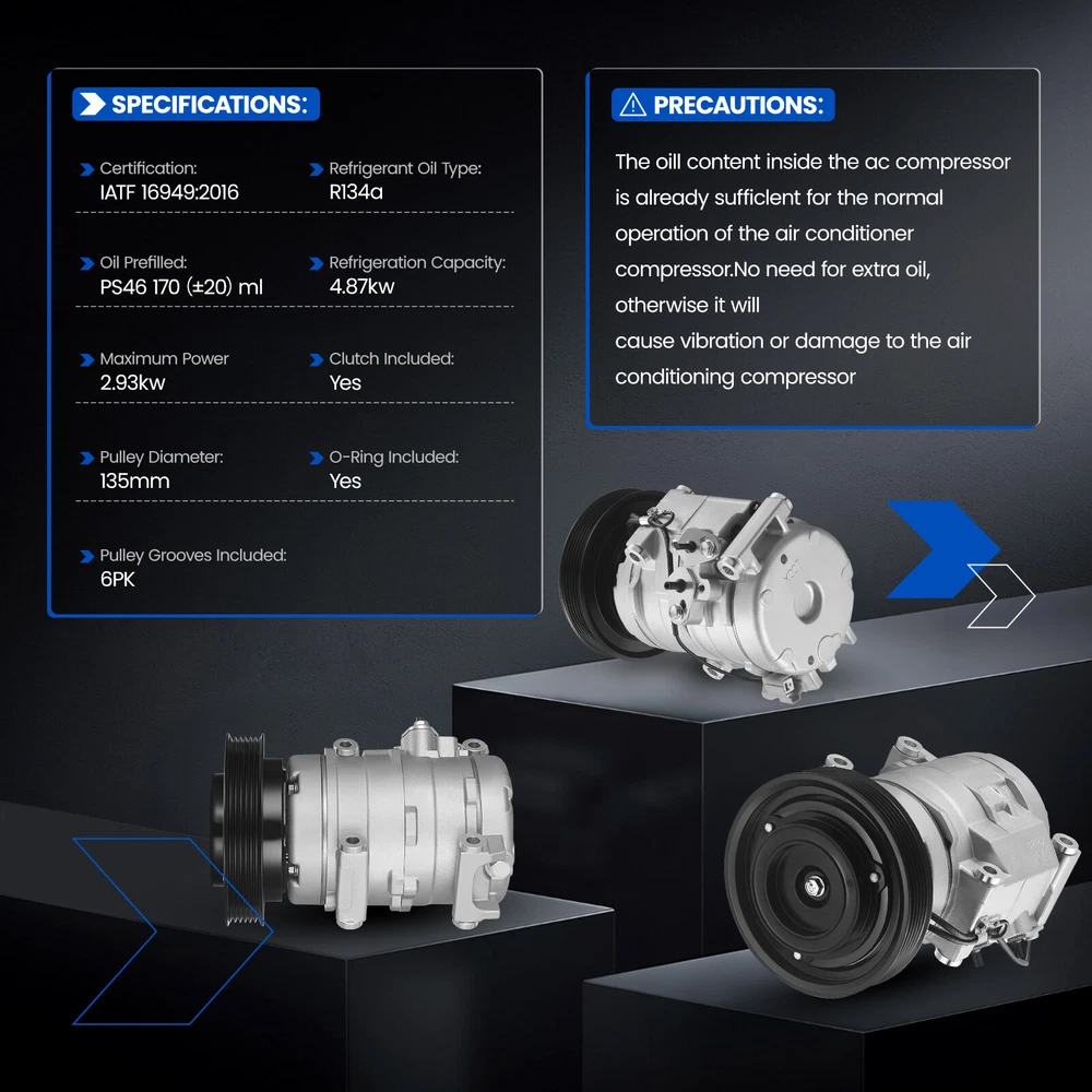 Product Introduction Type: A/C Compressor Voltage: 12V Warranty: 1 Year Fitment Type: Direct Replacement Fits For 2003-2006 Acura MDX 3.5L For 2004-2008 Acura TL 3.2L For 2007-2008 Acura TL 3.5L For 2003-2007 Honda Accord 3.0L For 2005-2007 Honda Odyssey 3.5L For 2005-2008 Honda Pilot 3.5L For 2006-2006 Honda Ridgeline 3.5L Package Include 1 x AC Compressor Fitment 2003-2006 For acura MDX 3.5L 2005-2007 For honda Odyssey 3.5L 2005-2008 For honda Pilot 3.5L 2006-2008 For honda Ridgeline 3.5L Part Number For acura/For honda 38810RCAA01 For acura/For honda 38810RDAA01 For acura/For honda 38810RDJA01 For acura/For honda 38810RGLA01 Austin Baker 10346280 Austin Baker 10346290 Austin Baker 10346610 Austin Baker 10351171 Austin Baker 10360291 Compressor Works 639318 Compressor Works 639322 Automotive Systems 4710535 Automotive Systems 4711001 Automotive Systems 4711535 Automotive Systems 4711537 Automotive Systems 4711562 Automotive Systems 4711628 Automotive Systems 4711629 Automotive Systems 4711630 Four Seasons 97307 Four Seasons 97327 Four Seasons 98307 Four Seasons 98327 Frigette 2041703 Global Parts Distributors 5512497 Global Parts Distributors 6512102 Global Parts Distributors 7512102 Hodyon 295787NH NAPA 254556 NAPA 255482 NAPA 275563 NAPA 275835 NAPA TEM254556 NAPA TEM255482 NAPA TEM275563 NAPA TEM275835 Omega 2011310 Omega 2011310AM Omega 2011310R Omega 2011320 Omega 2011320AM Ranshu 140241C Ranshu 140241NEW Ranshu 140241NIP Ready-Aire/Proliance 1443N Spectra Premium 0610098 Trad Automotive 4010052 Trad Automotive C1597 Trad Automotive C1597R Trad Automotive C1689 Trad Automotive C1689R Trad Automotive C1801R Valeo 10000665 Package Including 1 x A/C Compressor with Clutch
