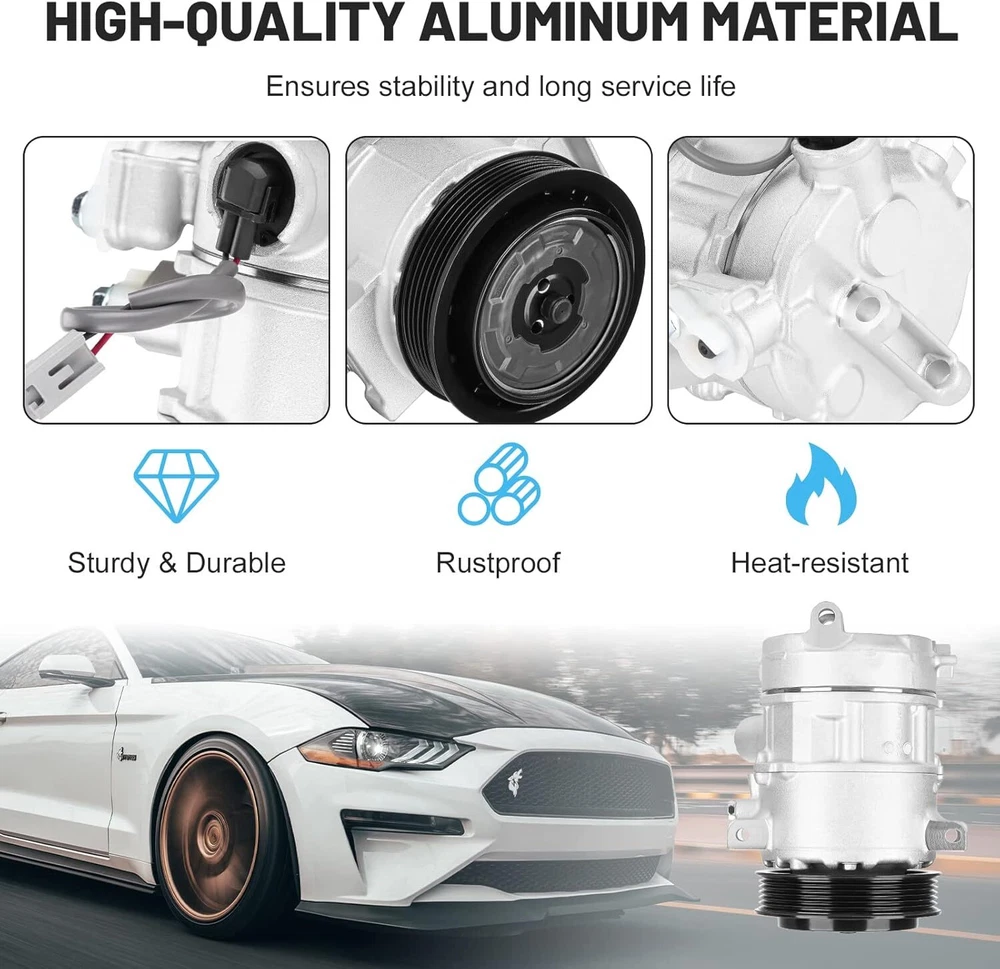 【Vehicle Compatibility】This air conditioner compressor with clutch fits for Dodge Caliber 2009-2012, Jeep Compass 2009-2017, Jeep Patriot 2009-2017 【Replaces Part#】For RL111610AB, 158388, 2022670AM, 140667C, 140667NC, 6512470, 7512470, 55111610AA, 55111610AB, 2022670, C2694R, 157388, 55111610AC, TEM255346, TEM276024 【Rapid Cooling】With the strong compressed pressure produced by this AC compressor, the conditioner system can quickly provide cold air to make you feel relaxed and comfortable during the trip 【Energy Saving】Our AC compressor kit works efficiently under low noise and tiny vibration to provide you a super cool trip. Driving at a stable speed will help reduce fuel consumption 【Durable construction】The compressor is mainly made of high-strength aluminum alloy which ensures reliable Specification& Feature : *Condition: 100% BrandNew and High Quality. *According to the original factory specifications. *Perfect match for the original car. *Stable characteristics, high reliability. *Replace OEM Number: CO30011C,RL111610AB,55111610AA,55111610AB,158388,6512470 55111610AC,RL111610AC,140667C,2022670AM,20-22670-AM 157388,7512470,255346,276024,TEM255346,TEM276024,2022670 *Fitment: Make Model Year Engine Notes Dodge Caliber 2009-2012 All Engine Jeep Compass 2009-2016 All Engine Jeep Compass 2017 All Engine 1st Design, Engine Code: ECN or ED6 or ED3 or EDD Jeep Patriot 2009-2010 All Engine Jeep Patriot 2011 L4 2.0L Engine Code: ECN, VIN: A Jeep Patriot 2011 L4 2.4L Engine Code: ED3, VIN: B Jeep Patriot 2012-2017 All Engine Please Note: *Please make sure the installation site is clean. Or, it will cause operating obstruction, even make the temperature of the compressor very high, and the belt on the clutch may melt. *Because the item is with oil when sent to you, so there is no need to add oil when you use it the first time. But you need to add the refrigerant , please add about 500g, don't need to fill up. There may be noise if the refrigerant is added too much. *No installation instruction included, professional installation is highly recommended. Package Includes: 1 x Air Conditioner Compressor W/ Clutch