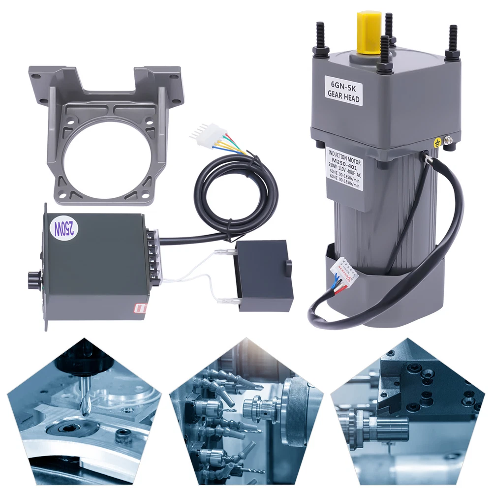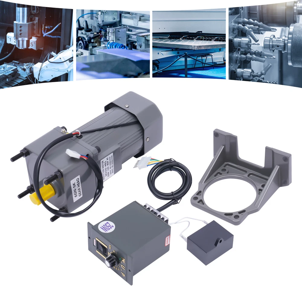 Package Included 1 x Motor 1 x Reduction Gearbox 1 x Governor 1 x Bracket Packing Size: 33*26*13cm/12.99*10.23*5.11in Gross Weight: 7.9kg/17.41lbs Net Weight: 7.3kg/16.09lbs AC Gear Motor Electric Motor Variable Speed Controller 0-270rpm 110V 250W NEW 110V 250W AC Gear Motor Electric Motor Variable Speed Controller 0-270rpm Description The product includes a complete set of accessories. In addition to the motor, it is also equipped with a bracket, a reducer, and a speed regulator for your convenience. This gear adjustable motor is primarily used to reduce the speed of a series of gears, thereby producing more power torque to improve working efficiency. Key Features Strong and Durable: The housing of this product is made of high-quality aluminum alloy, which is strong, durable, wear-resistant, anti-shock, high-temperature resistant, and can protect the internal parts well. Stable Operation: Both ends of the speed control motor rotor are fitted with ball bearings, which allow it to operate with low friction, reduce energy consumption and generate lower temperatures to ensure stable operation. High Efficiency: The stator and rotor are made of pure copper coils with good electrical conductivity, allowing for a constant high and stable power output. Adopting high-precision steel gears effectively increases the torque of the motor, which greatly enhances its working efficiency. Adjustable Speed: You can adjust the speed from 0% to 100%(0-270rpm) through the stepless speed knob on the governor according to the different situations to achieve the desired effect. Easy to Install: Since the motor and gearbox are already installed, you only need to plug the governor cable into the jack of the motor cable to quickly connect the motor and governor, which saves both time and labor. Forward and Reverse Rotatable: The governor is initially specified for forward rotation, but you can connect the wires on the CCW to the CW and then it can be converted to reverse rotation to suit your different needs. Good Heat Dissipation Performance: The motor has a built-in fan heatsink and cooling holes at the rear of the motor, providing good ventilation and heat dissipation to ensure stable performance and long service life. Low Noise: The speed control motor adopts high precision and high-speed bearings inside to bring you lower noise and create a quieter environment for you. Details Indicator Light: The indicator light on the governor will be on when the power is on so that you can better understand the use status of the product. Motor Bracket: The bracket comes with triangular reinforced side plates for a stable structure, making the motor more firmly fixed without tilting or collapsing. Practical Governor: The governor is equipped with a threaded speed regulating knob, a speed scale panel, and a connector wiring description on the side, which is simple and easy to operate. It is also equipped with a one-button power switch, making it safer to use. Application This product is widely used in industrial assembly lines, intelligent equipment, animal husbandry machinery, printing machinery, textile machinery, instrumentation, food machinery, power transmission and transformation equipment, road gate machines, medical equipment, logistics equipment, security check facilities, financial equipment, new energy, industrial robots, and other industries. Package Included 1 x Motor 1 x Reduction Gearbox 1 x Governor 1 x Bracket Packing Size: 33*26*13cm/12.99*10.23*5.11in Gross Weight: 7.9kg/17.41lbs Net Weight: 7.3kg/16.09lbs Notes 1.When the motor is working, it is normal for the temperature to rise to about 65℃/149℉. Please rest assured that it will not affect your use. 2.Please do not knock the motor and the body of the governor. 3.Please disconnect the power supply before changing the wire. 4.Please allow the slight color difference caused by the shooting light and 1-3cm error due to manual measurement, and make sure you do not mind before you order Payment Delivery details Terms of sales About us Contact us Payment We accept ebay payment 。 Fees such as import duties, taxes are not included in the item price or shipping costs. These charges are the buyer's responsibility. Delivery details Shipping: 2-9 working days to: USA Terms of sales We maintain high standards of excellence and strive for hundred percent customer satisfaction. Feedback is very important to us. We hope that you contact us immediately before you give neutral or negative feedback, so that we can address your concerns. It is impossible to address issues if we do not know about them! About us Your satis faction is our ultimate goal. We work hard to earn your trust and future business. Our certified technicians have tested each item before shipping. The unit comes with 1 year limited warranty on all manufacturing defects. a) If you receive a defective item, you may return it or ask for a discount. Please contact us within 14 days after you receive the package. b) What you returned must be intact and in its original packaging as re? u. Customer is responsible for shipping costs of the returned item. c) We will cover the cost of shipping back t with the shipping rate indicated in the registration page. We will send you a new unit or refund the full payment you paid. Thank you. Contact us Business Hour Business Hour: Monday To Friday: 8:30 AM to 5:00 PM (Beijing China time) Due to time zones, our reply to your questions may not be immediately. But within above working time, we will reply your email within 24 hours. If it's non-workdays, please kindly be patient and wait till Monday. Please contact us with ebay message. Please feel free to contact us if you have any questions. Monday To Friday: 8:30 AM to 5:00 PM (Beijing China time) Due to time zones, our reply to your questions may not be immediately. But within above working time, we will reply your email within 24 hours. If it's non-workdays, please kindly be patient and wait till Monday. Please conta