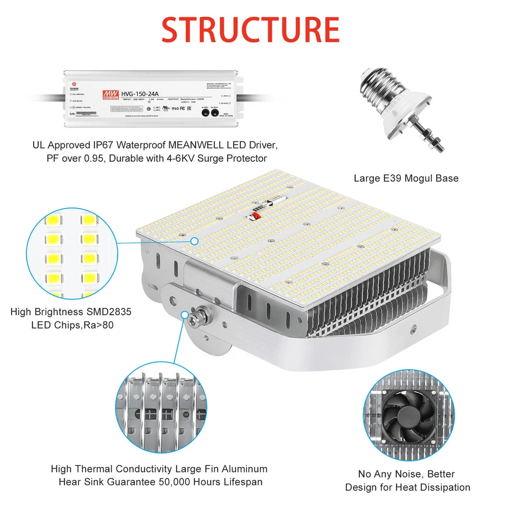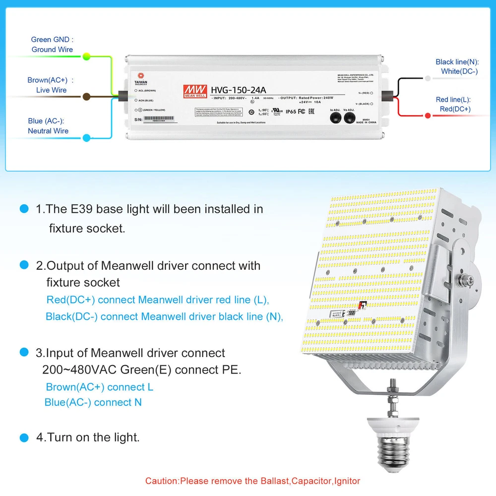 Product Description AC480V LED Retrofit Kits Replace Metal Halide HID HPS Light For Parking Lot Road SUPER BRIGHT AND ENERGY SAVING -- This LED high bay retrofit kit provides an incredible Lumen Efficacy of 140 lm/W to replace MH/HPS/HID traditional light fixtures, effectively saving 90% of the amount on your energy bills, 5700K daylight white ensures a super bright lighting experience EASY & SAFETY INSTALLATION -- Comes with adjustable U bracket designed for horizontal and vertical mounting that makes it easy to retrofit old mercury vapor/metal halide/HPS bulb of shoebox area parking lots light, cobra head area light, wall pack, canopy, high bay, street lights, gas station fixtures, flood lights, high bay fixtures, ect SUPERIOR DESIGN -- high-quality SMD LEDs to obtain 140 lumens per watt and chips have a 80+ CRI Rating for clear color. Meanwell Driver for high efficiency, long life and high reliability. Better cooling system designed with aluminum heat sink and a high speed fan ensures long lifespan and low operating temperature. With an extra long life rating of 500,00 hours, that's about 23 years of 6 hours per day REBATE ELIGIBLE -- This Commercial LED retrofit kit with ETL, DLC certifications to ensure energy rebates, ETL approved for use in light fixtures, lowest maintenance, risk-free purchase. Rated for 277-480 vlts BEST SUPPORT TEAM -- 5 Years Warranty for our MH/HPS/HID replacement retrofit kits, easy and fast replacement is offered if any quality issue. No Flickering, No mercury, No UV infrared or other deleterious radiation, safe for your eyes Product Description We are a professional LED lamp manufacturer with a production area of 4,000 square meters. We have been manufacturing LED lights since 2008 . We focus on creating the best lighting experience, committed to giving customers excellent products and the best service. Specifications: Item No.: 150W/240W/300W Shoebox LED Retrofit Kits LED Type: 1.5W 3030 Luminous Flux(lm): 21750Lm-33600LM-42000LM CCT(K) :5700K CRI > 80 Beam Angle: 180 degree Lifespan (Hrs) > 50,000Hours Input Voltage(V): 277-480 VAC Frenquency (Hz) 60/50 Hz Power Factor > 0.90 Replacement :600W Metal Halide / HPS Materials: Aluminum+PCB+PBT Base Options E39 Certificate:ETL,DLC Applications: Highways, Parking Lots, Municipalities, Commercial Developments, Airports, Residential Streets, Institutional, Power Plants, Correctional Facilities, Warehouses and Workshops, ect. Warranty: Please assure that we always stand behind our retrofit kits. 5 years warranty means we got you covered. Easy and fast replacement is offered if any quality issue. Package include: 1 x LED Retrofit Kit Head 1 x MEANWELL Power Supply( 277-480 Vac Input) 1 x E39 Screw Base 24-Hour Online Customer Service Please feel free to contact us if you have any questions Delivery time: 2-5 working days, ship from USA warehouse directly Important tips: Please remove the ballast, HID bulb capacitor and ignore in your LED retrofit kit. Please install the light follow as the installation instruction. About Us Payment Shipping Returns Contact Us SHENZHEN NUOGUAN TECHNOLOGY CO. LTD founded in 2010. We are high-technology comany specialized in manufacture Commercial and industrial LED light. Advanced production equipment and excellend R&D ability help us to combining service ,production sell together provide top-level products to our customers. 1. Payment is expected within 7 days of auction close. Or Unpaid Items will be forfeited per eBay . 2. Taxes may be applicable at checkout as states adopt new laws and regulations regarding sales tax collection. 1. We ONLY ship to USA . 2. Orders processed within 1-2 business day of payment verification. There’s no Delivery service or courier service on Saturdays, Sundays or Public Holidays. 3. We have 3 different warehouse in US,so due to stock status and time differences, we will choose to ship your item from our first available warehouse for fast delivery. 4. We offer Free Shipping within the Lower 48 states! All packages are sent via UPS or USPS.The delivery time for UPS Ground is typically 2-5 business days. We strive to ensure 100% satisfaction for each and every one of our customers. we offer a 30-day 100% money-back guarantee on all eBay orders. If your item isn't just as you wished, simply send it back to us and we'll refund or replace your item. Please note that all returns must be authorized by our Customer Service department. please contact us though message first if you have any problem. USA Warehouse. Fast shipping! We are appreciated your purchasing form our eBay store. Office Time: 9:30 - 18:30, Monday - Saturday (UTC+8) Please contact us with eBay Message. We will respond you within 24 hours on business day. About Us SHENZHEN NUOGUAN TECHNOLOGY CO. LTD founded in 2010. We are high-technology comany specialized in manufacture Commercial and industrial LED light. Advanced production equipment and excellend R&D ability help us to combining service ,production sell together provide top-level products to our customers. Payment 1. Payment is expected within 7 days of auction close. Or Unpaid Items will be forfeited per eBay . 2. Taxes may be applicable at checkout as states adopt new laws and regulations regarding sales tax collection. Shipping 1. We ONLY ship to USA . 2. Orders processed within 1-2 business day of payment verification. There’s no Delivery service or courier service on Saturdays, Sundays or Public Holidays. 3. We have 3 different warehouse in US,so due to stock status and time differences, we will choose to ship your item from our first available warehouse for fast delivery. 4. We offer Free Shipping within the Lower 48 states! All packages are sent via UPS or USPS.The delivery time for UPS Ground is typically 2-5 business days. Returns We strive to ensure 100% satisfaction for each and every one of our customers. we offer a 30-day 100% money-back guarantee on all eBay orders. If your item isn't just as you wished, simply send it 