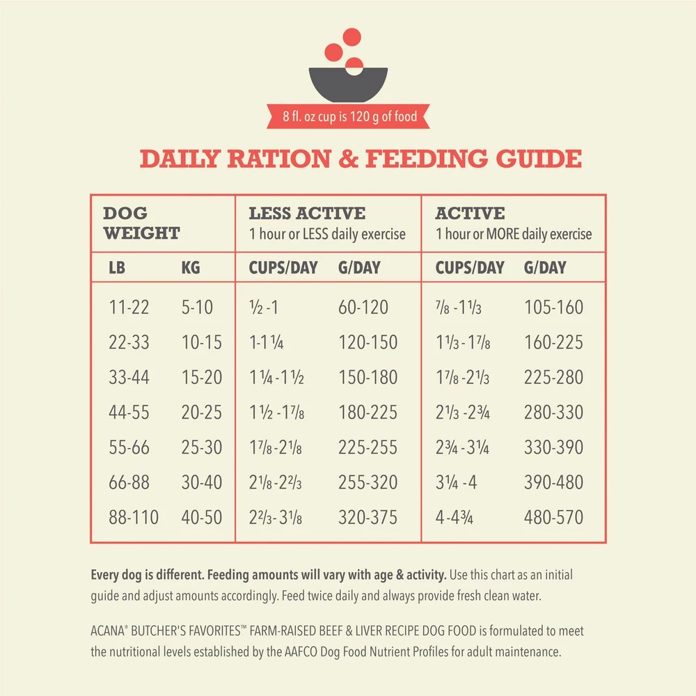 BUY WITH CONFIDENCE 100K+ Satisfied Buyers as your satisfaction is our top priority with easy returns, and dedicated support. FAST & RELIABLE SHIPPING All orders are processed quickly with reliable shipping partners. Most items ship within 24 hours. 20+ YEARS OF EXPERIENCE We pride ourselves on serving customers worldwide for over 20 years at lowest Possible Prices. ACANA Butcher’s Favorites Grain-Free Dry Dog Food Farm-Raised Beef Liver Rec... One (1) 4 lb bag of ACANA Butcher's Favorites Farm-Raised Beef & Liver Recipe Dry Dog Food High-protein dog food recipe features fresh farm-raised beef, beef liver and Yorkshire pork and is balanced to include 70 percent* animal ingredients and 30 percent** plant ingredients and nutrients Contains a mix of premium dry kibble and protein-rich, tender pieces of real beef jerky your dog will crave Protein-rich animal ingredients are balanced with other wholesome ingredients to help support digestive health, a healthy weight and a healthy skin and coat Premium dog food made in the USA with quality ingredients from around the world Item Specifics Container Type: Bag Age Range Description: Adult Item Package Quantity: 1 Brand: ACANA Item Display Weight: 4.0 Item Form: Dry Kibble Recommended Uses For Product: Feeding Or Training Your Pet Size: 4 Pound (Pack Of 1) Part Number: F1B205331K01800 Master Packs Per Layer Quantity: 13 Style: Farm-Raised Beef Master Pack Layers Per Pallet Quantity: 3 About Us Payment Shipping Returns Welcome to Bixlife ! We are committed to providing high-quality products at competitive prices with exceptional customer service. Our mission is to make your shopping experience smooth, reliable, and worry-free. Every item we offer is carefully selected and shipped with care. Shop with confidence knowing your satisfaction is our top priority. Shop Smart. Shop Secure. Shop Bixlife! We only accept eBay Managed Payments . This allows you to securely pay with your preferred method, including major credit and debit cards, PayPal, Apple Pay, and Google Pay (where available). Payment is required at checkout to ensure fast and smooth order processing. Domestic Shipping Only We ship exclusively within the United States . No International Shipping We do not ship outside the USA at this time. Orders are processed and shipped promptly after payment is received. Tracking information will be provided once your order has been dispatched. We offer a 30-day return policy from the date of delivery. Items must be returned in their original condition and packaging . Buyers Remorse Returns : A 15% restocking fee will be applied. Return shipping costs are the responsibility of the buyer unless the item is defective or not as described. Refunds will be issued back to your original payment method once the return is processed. We hope you will love your purchase, however if you need to return it, we have a 60 day return policy. We hope you will love your purchase, however if you need to return it, we have a 60 day return policy. We hope you will love your purchase, however if you need to return it, we have a 60 day return policy. We hope you will love your purchase, however if you need to return it, we have a 60 day return policy. Other Deals ACANA Wholesome Grains Dry Dog Food Puppy Sea Farm Recipe 22.5lb Bag $102.56 JustFoodForDogs Frozen Fresh Dog Food, Complete Meal or Topper, Fish Sweet P... $103.91 JustFoodForDogs DIY Nutrient Blend for Homemade Dog Food, Beef Russet Potato... $35.89 ORIJEN Grain Free High Protein Dry Dog Food Senior Recipe 23.5lb Bag $141.28 Weruva Classic Dog Food, Variety Pack, Barons Batch, Wet Dog Food, 5.5oz Cans... $92.07 Zignature Dog Food, Duck, 25 Pounds $121.39 Add suggested items to your listings - Check it out on 3Dsellers.com eBay listing template by 3D sellers.com - Try for Free!