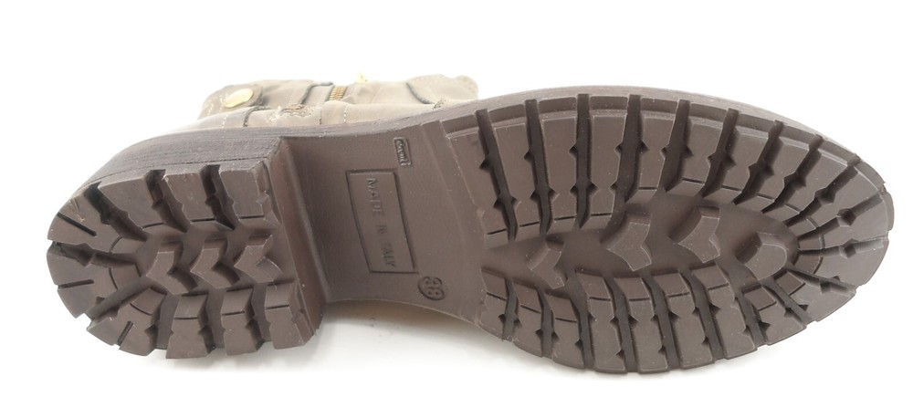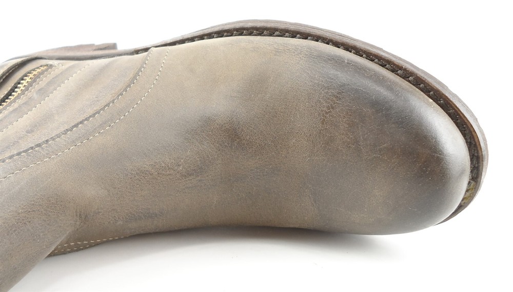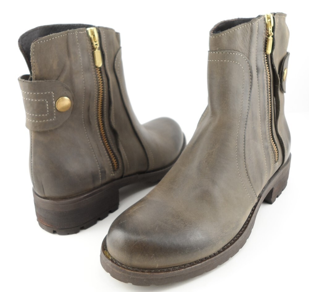 New/ clearance in original box Oiled leather upper; Leather lining; Man-made sole Decorative gold tone hardware Stacked heel measures 1 1/2" * Round toe Note : These boots have been distressed for a more vintage look *Measurements are hand taken for every item we sell. Every item is carefully inspected to ensure that you receive a quality product. Designer Shoe Box guarantees this product is 100% Authentic