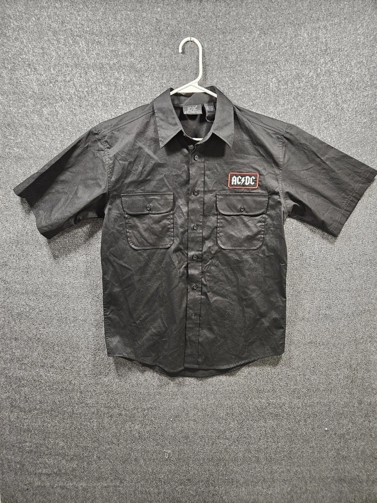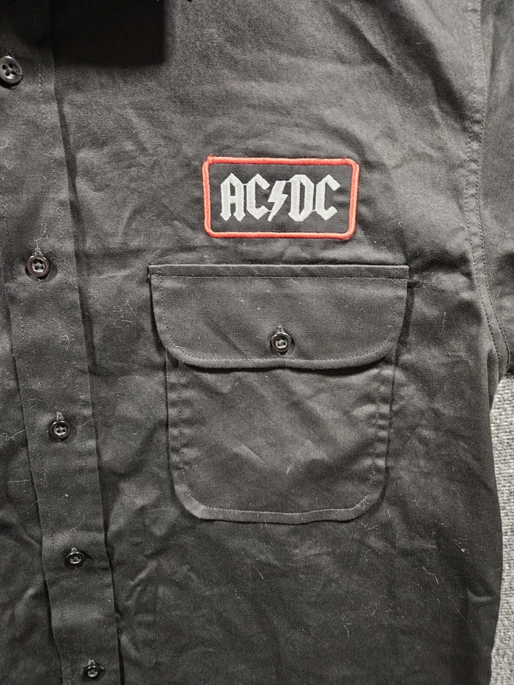 AC/DC Rock Officially Licensed Cotton Button Down Work Shirt Short Sleeve Size S