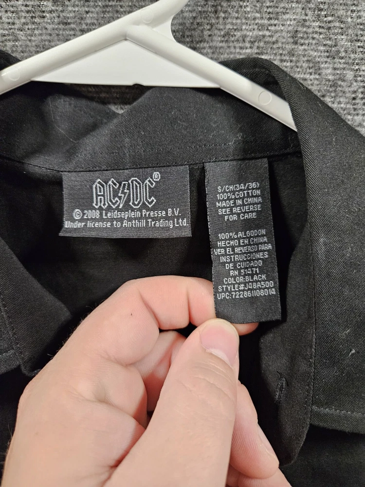 Size Type: Regular Type: Button-Up Sleeve Length: Short Sleeve Fit: Regular Material: Cotton Fabric Type: Cotton Department: Men Color: Black Size: S Collar Style: Button-Down Features: Pockets Brand: AC/DC Theme: Rock