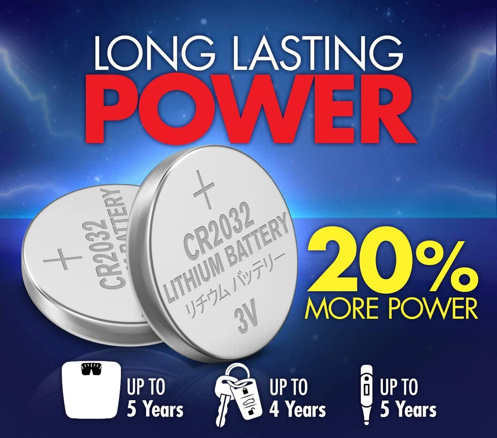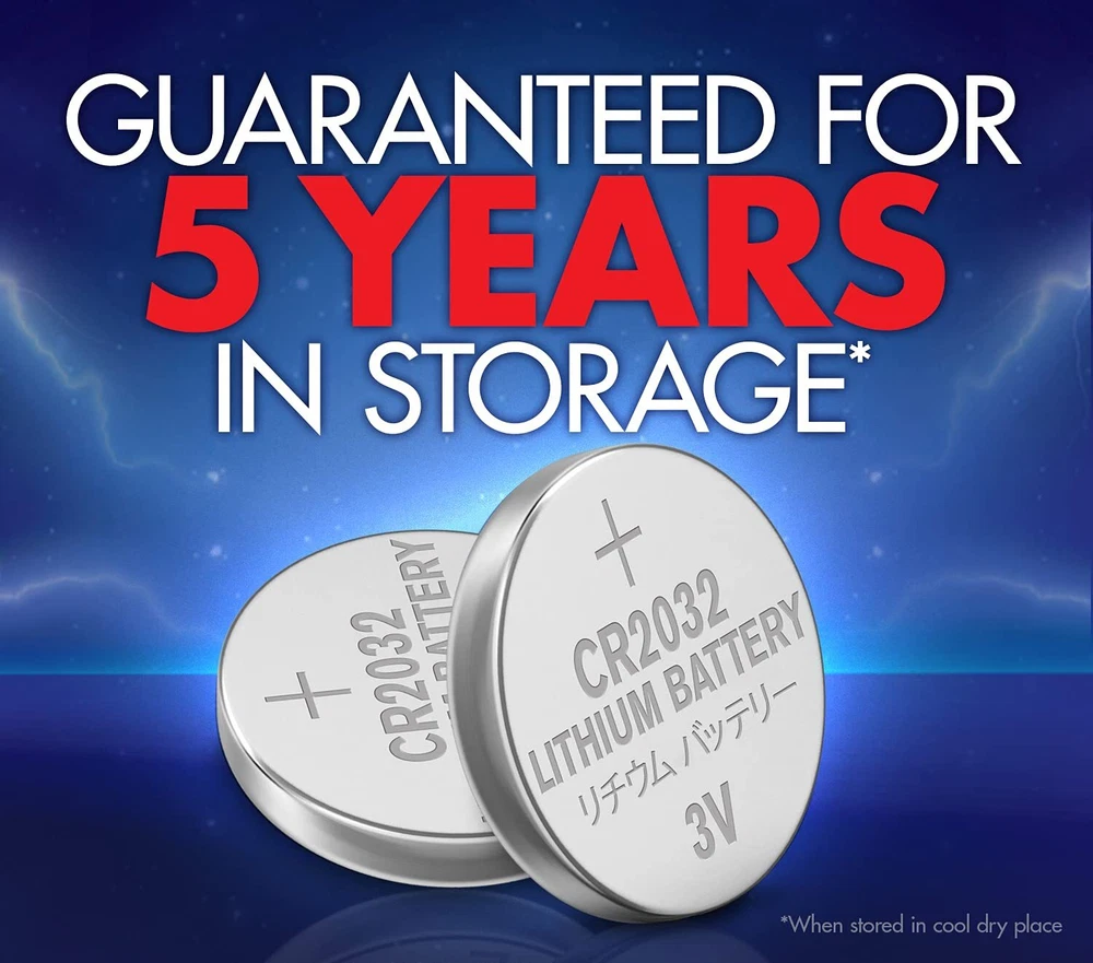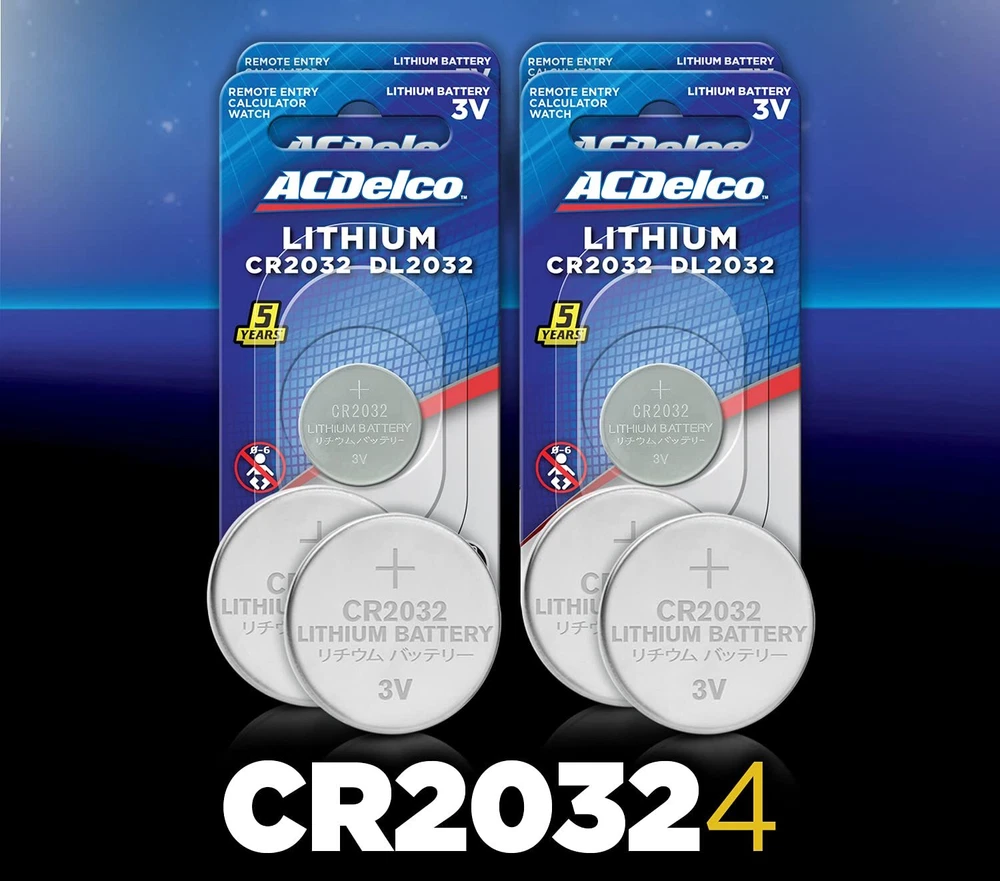 Acdelco CR2032 lithium coin cell batteries provide reliable energy to many common electronics, such as watches, keyless entry devices, glucose monitors, heart-rate monitors, calculators, and toys. The 3-volt batteries have high energy density to provide a long-lasting power source. They are mercury- and cadmium-free, making them safe for your home and better for the environment. Acdelco CR2032 batteries are designed not to Leak and to hold in power for up to five years in storage under normal conditions. Includes four CR2032 batteries. SMALL ELECTRONIC DEVICES: CR2032 3-volt lithium coin cell batteries are great to have on hand for your small electronic devices such as watches, calculators, key fobs, medical devices, games, Apple Air Tags, sporting goods and more CHILD RESISTANT PACKAGING: 2032 3-volt lithium coin cell batteries are sealed in child resistant packaging ZERO MERCURY: Contains no mercury or cadmium; safe for the home and better for the environment LONG-LASTING POWER: Anti-leakage protection; holds in power for up to 5 years in storage under normal conditions REPLACES DL2032: Use lithium coin cell battery CR2032 in place of DL2032 for same uses