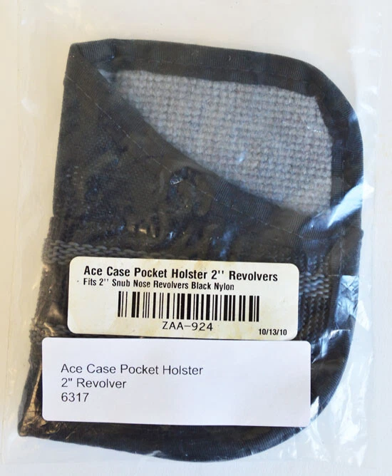 New ACE Case pocket holster for 2" snub nose revolvers. Black nylon. Check out our other listings, we will gladly combine shipping. For combined shipping place items into your shopping cart . Then click on request total . Ebay will send us a notice and we can figure the best shipping for your order. And send you an invoice with the correct shipping. Due to Ebay new payment system if you click on Buy It Now and pay for the items individually we cannot refund the shipping overage. Their system does not allow partial refunds after the fact.
