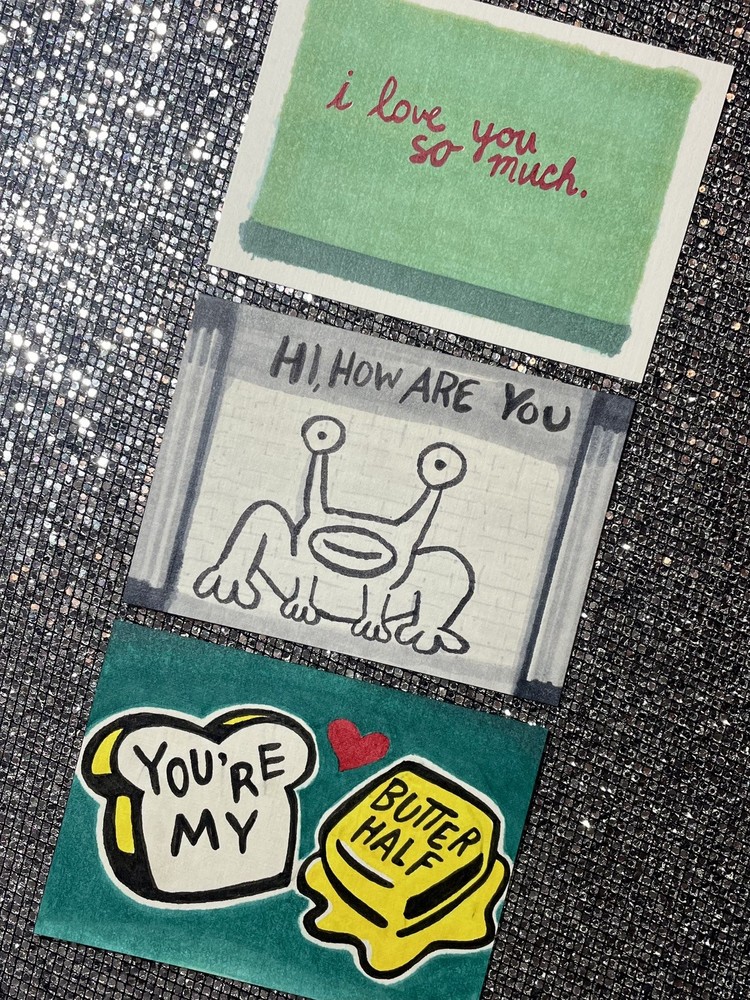 This is an original ACEO by artist Jessie Margolis measuring 3.5 inch x 2.5 inch. Alcohol marker and acrylic pen on paper. Includes only ONE card from the three piece series. Check back weekly for new, original art!