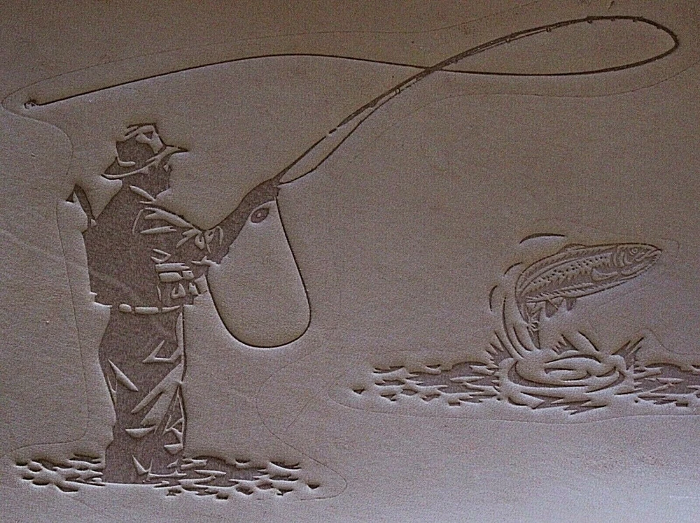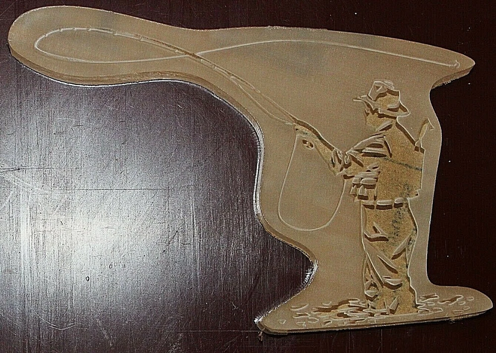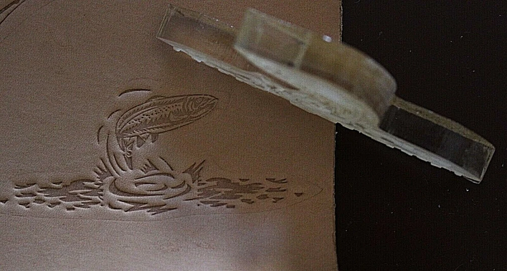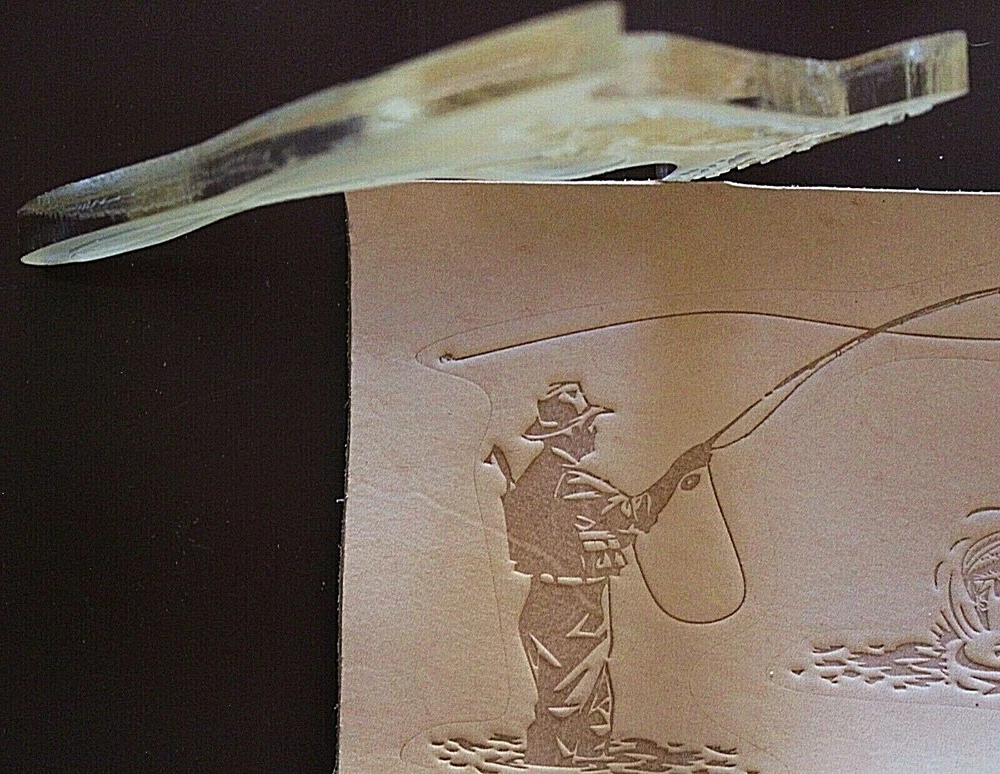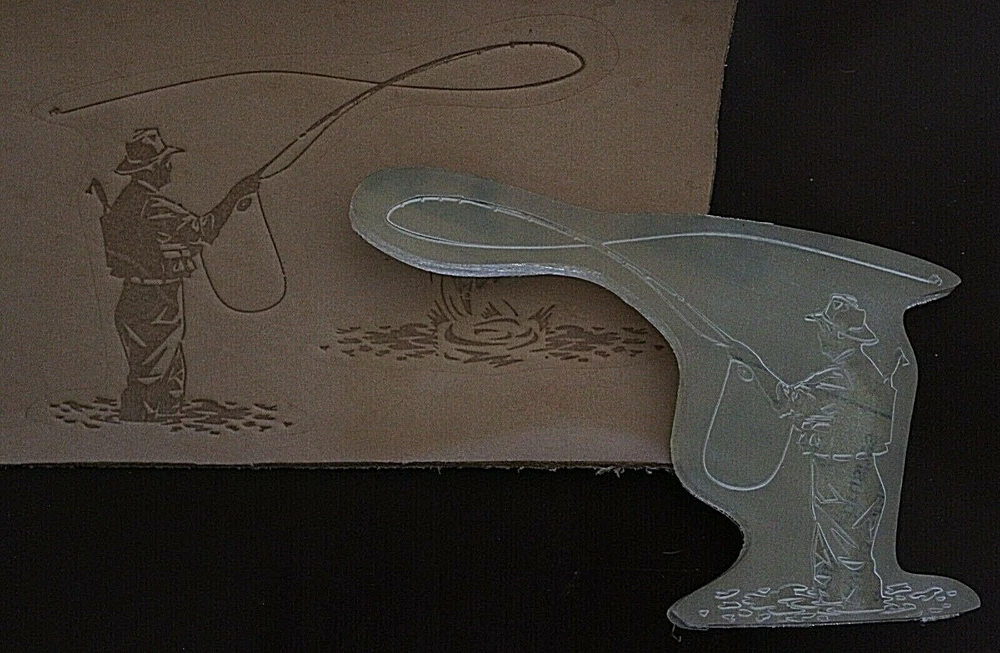 If you are purchasing more than one item from our store, add the items to your cart then request a combined shipping invoice from your cart. THESE STAMPS REQUIRE A CLICKER PRESS or a FLATBED PRESS ACRYLIC - NO HANDLE THIS IS NOT A METAL STAMP AND IS NOT TO BE HAMMERED HANDMADE This is a Highly Detailed Laser Engraved Acrylic " FLY FISHERMAN AND TROUT " THIS COMES AS 2 SEPARATE STAMPS SO YOU CAN PUT THEM AS CLOSE OR FAR AS YOU WANT THESE WILL LOOK GREAT ON A , WALLET, JOURNAL, BILL FOLD OR ANYTHING ELSE YOU ARE HAND CRAFTING. Embossing Stamp for stamping on veg tanned leather. Made of Clear 3/8" Extruded Acrylic. The stamped impression is approximately LARGE 4 1/4" x 3 1/2" MEDIUM 3 1/4" x 2 3/8" SMALL 2 3/8" x 2" CAUTION: These stamps are NOT made to be hammered. These stamps come out perfect when using a Flat Bed Press or Clicker Press . Hard surface plates MUST cover the entire area of the stamp both top and bottom as this will avoid any damage to the stamp and leave a very nice and even design on the leather. For best result you need to wet the leather. WE DO NOT WARRANT ANY DAMAGE FROM BUYER MISUSE OF THIS ITEM DUE TO IMPROPER TECHNIQUE. CAUTION: These stamps are NOT made to be hammered. CUSTOM ORDERS ARE WELCOMED If you need a custom design, shape and or style, we can make it. Just send your artwork file and overall dimensions of the leather shape or design you need, and we can make it. If you have an idea but not sure of what exactly you want, we can help coordinate you ideas to make it work. Custom orders are ready for shipping in 24 or 72 hours. ___________________________ CRAFTY COYOTE LEATHER WORKS * PAYMENT * All Payments expected within 2 days of winning AUCTION or BUY IT NOW purchases. All payments accepted through PayPall ONLY * SHIPPING DETAIL * SHIPPING IS MONDAY THROUGH FRIDAY If an item closes Friday after 5:00p.m. it may not ship til the following business day (Monday) COMBINED SHIPPING AVAILABLE We ship only to confirmed Pay pal address. NO APO/FPO addresses. UNITED STATES SHIPPING ONLY! WE DO NOT SHIP INTERNATIONALLY * Return Policy * 30 day return policy Money Back Gaurantee Buyer pays Return Shipping. If you have any questions, please feel free to ask, it helps me because there might be something I forgot to mention, but please do so before you bid * Feedback * All we want are happy buyers. In the unlikely event there's a problem when you receive this item, contact us before you leave feedback and we'll do what we can to resolve the problem. We'll take back any item that is not exactly as we represented it but only if you contact us before you leave feedback.