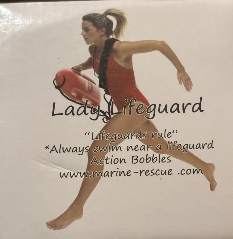 ACTION BOBBLE LADY LIFEGUARD BOBBLE HEAD - 7.5"- RARE Action Figure. In excellent condition, brand new. The box shows some wear, with the plastic on the box broken and a few small holes. Please review all photos carefully before purchasing. Thank you!
