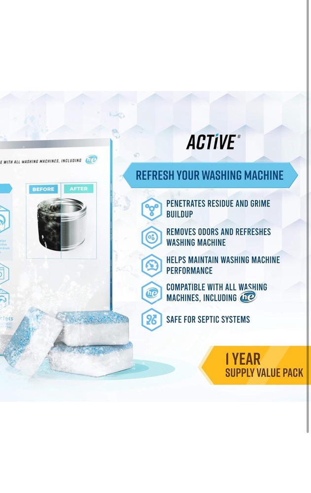 The Active Washing Machine Cleaner and Mold Stain Remover is a gel-based stain remover specifically designed for removing mold and stains from washing machines. Made by the brand Active, this eco-friendly product comes in a pack of 2 and is manufactured in the United States. With its powerful formula, this cleaner effectively tackles tough stains and ensures a hygienic and clean washing machine for optimal performance. Perfect for maintaining the efficiency and longevity of your washing machine, this product is a must-have for any household.