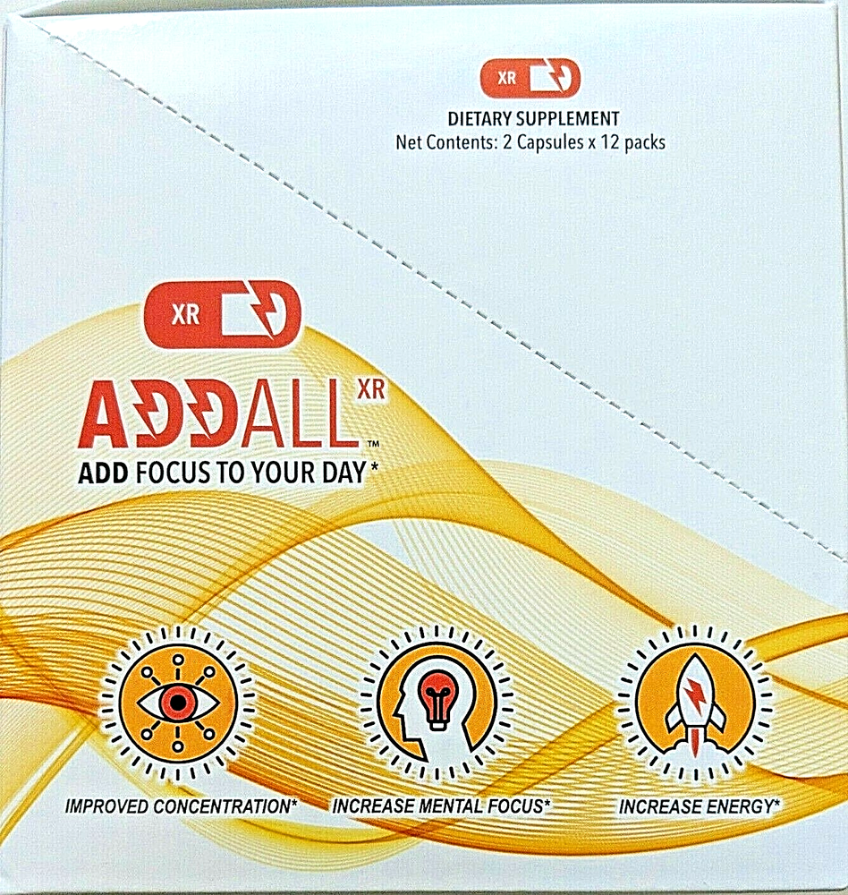 ADDALL XR 750mg, Energy Focus Concentration, 12 Packs - 24 Capsules - FREE SHIP. Condition is "New". Shipped with USPS First Class.