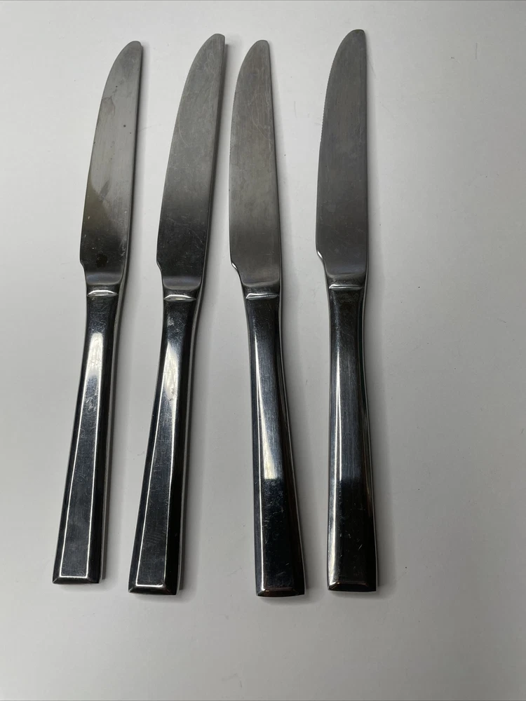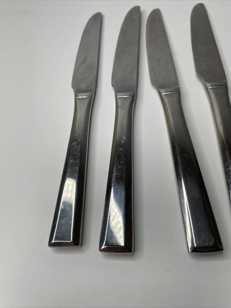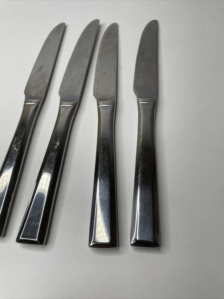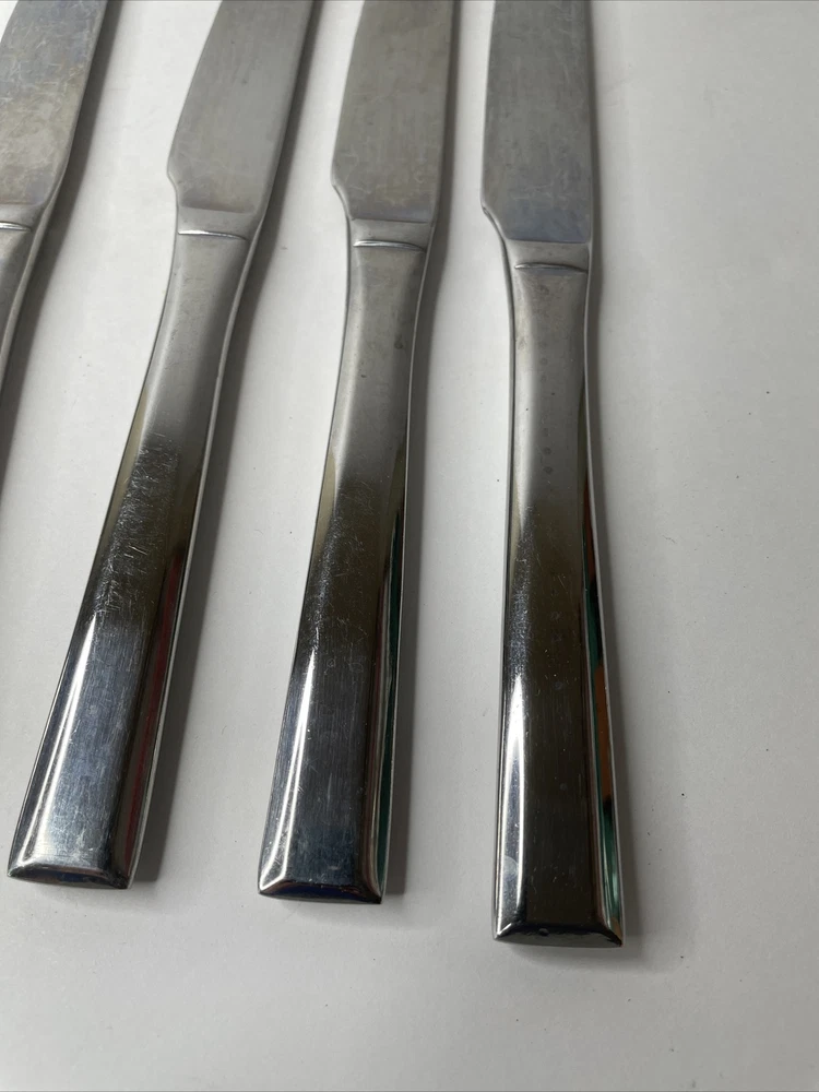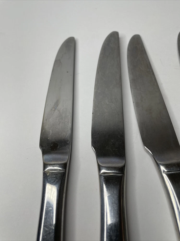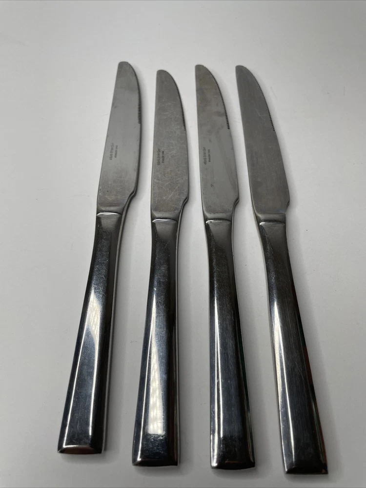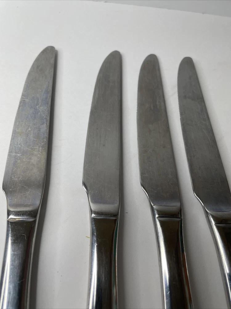 ADDISON Reed & Barton 4 Dinner Knives Stainless Everyday Flatware China Used condition, all in varying degrees of minor wear/marks/minor imperfections. One has the R&B everyday mark faded off. Check pictures to judge condition no returns Message me with any questions thanks