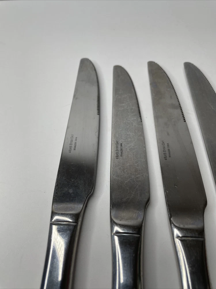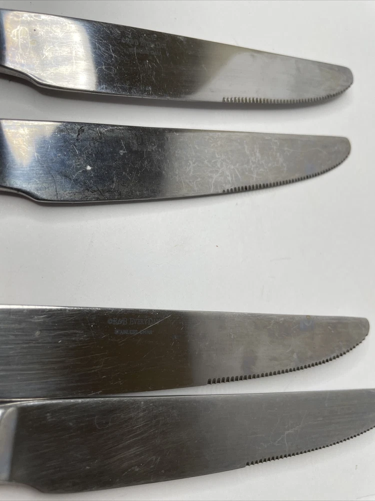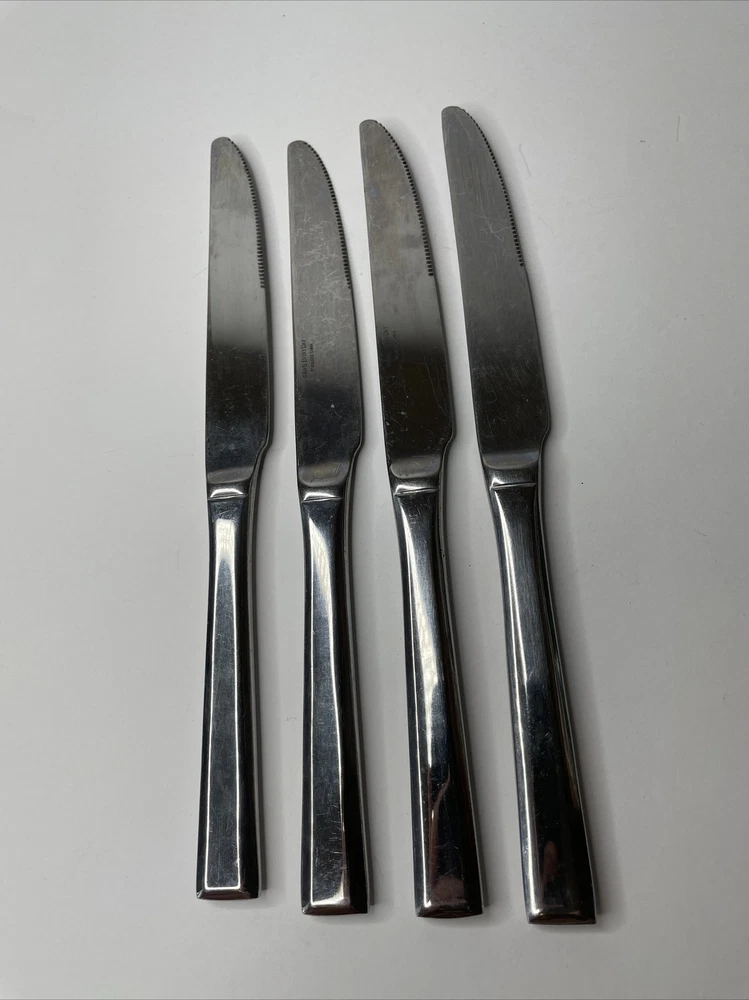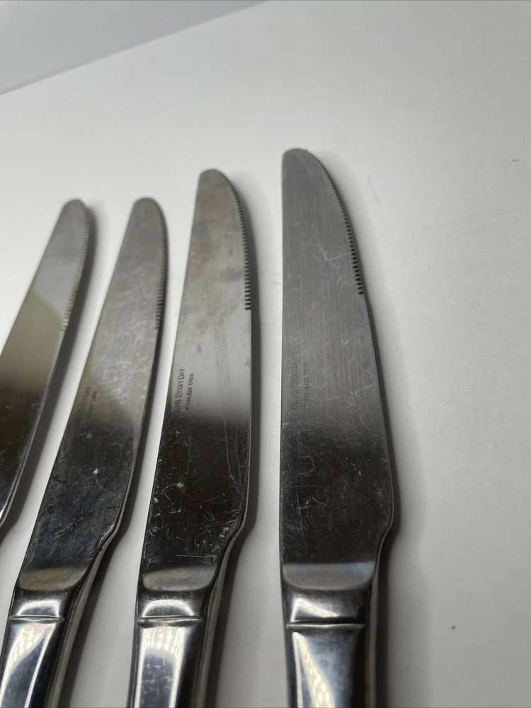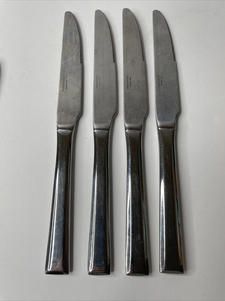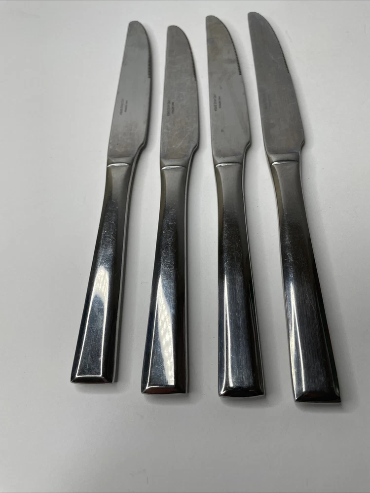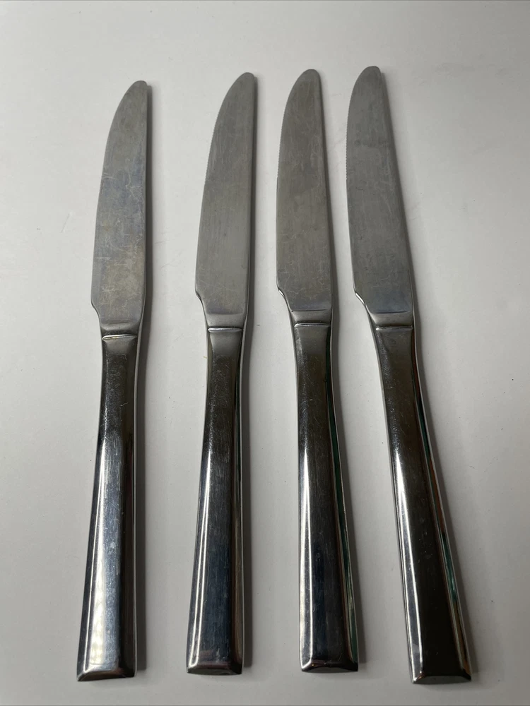 ADDISON Reed & Barton 4 Dinner Knives Stainless Everyday Flatware China Used condition, all in varying degrees of minor wear/marks/minor imperfections. One has the R&B everyday mark faded off. Check pictures to judge condition no returns Message me with any questions thanks