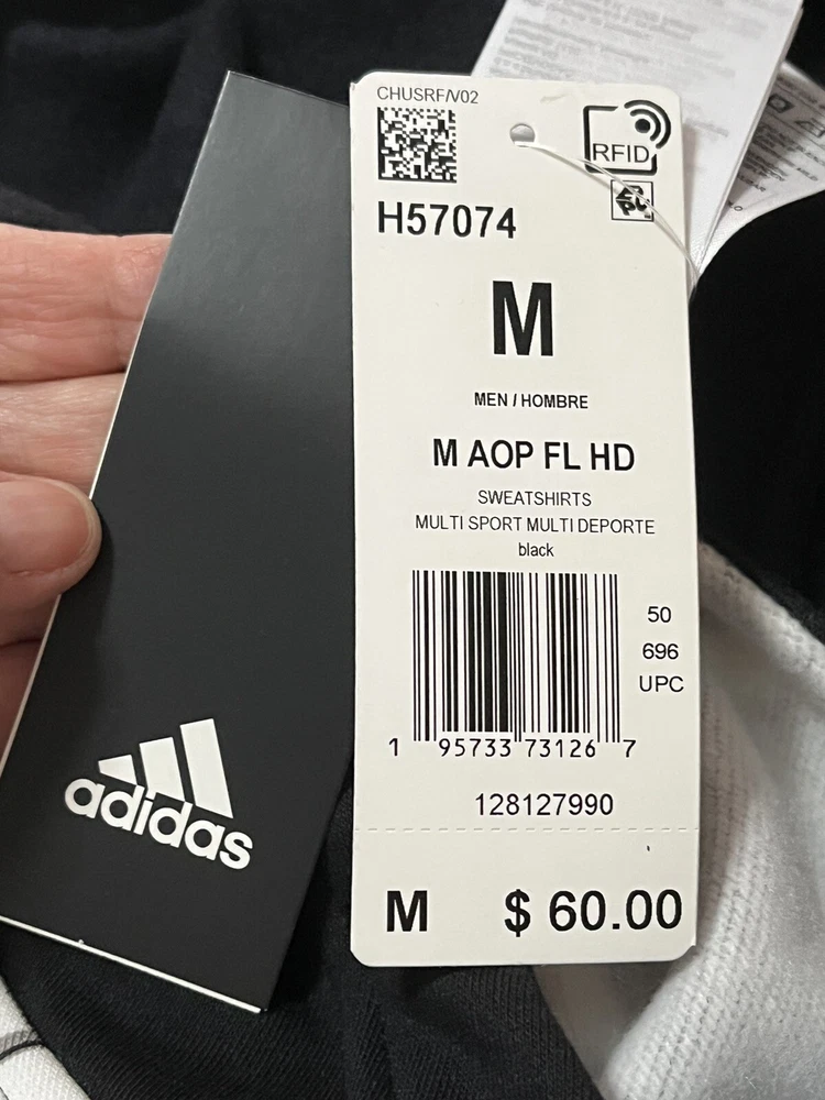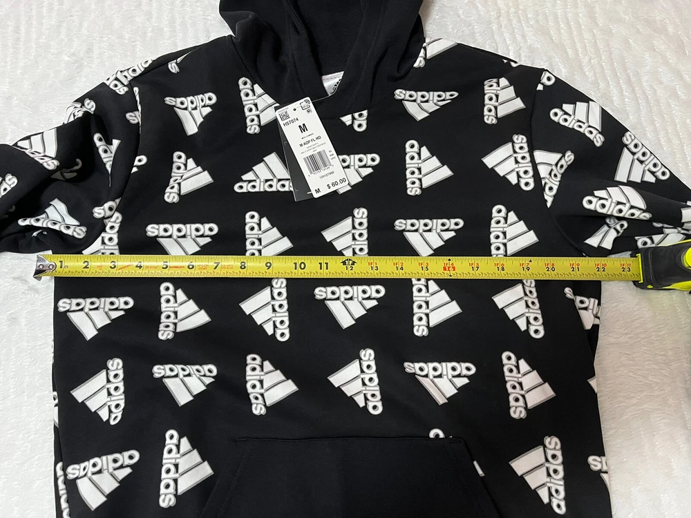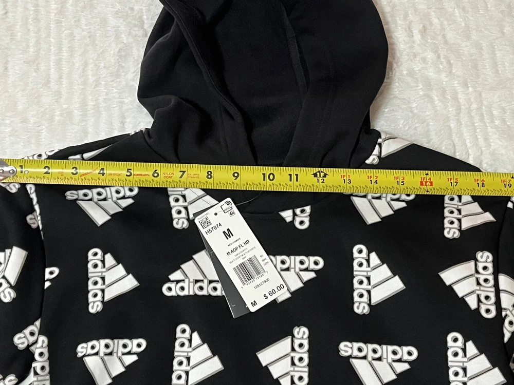 ADIDAS Hoodie BLACK ALL OVER PRINT Hooded SWEATSHIRT Pockets SZ Medium NWT. Retails for $ 60.00 great for fall or Christmas gifts. See pictures for details & measurements , thank you Shipped with USPS Ground Advantage.