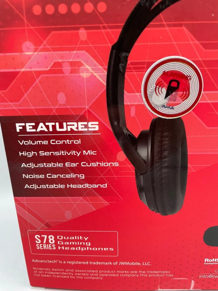 ADVANTECH super slim wired Gaming headset for nintendo switch S78 series. FEATURES Volume Control High Sensitivity Mic Adjustable Ear Cushions Noise canceling Adjustable Headband