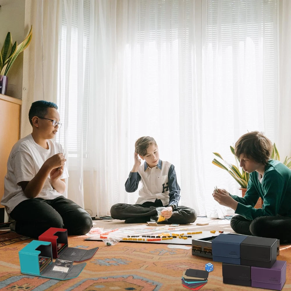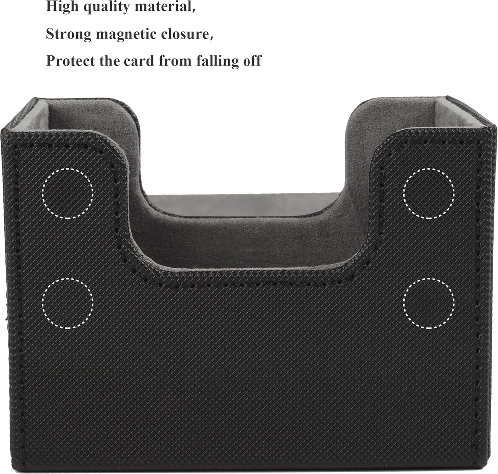 Leather Capacity - Commander deck box can hold 100+ double-sleeved cards, 150+ single- sleeved cards, 200 + unsleeved cards, Due to the thickness of sleeves, the actual number of cards that can be holded varies. Exquisite Workmanship - The card deck box for MTG outer skin is made of mesh pattern, which is non-slip and wear-resistant; each edge is precisely sewn, the margins are symmetrical, uniform and meticulous; the entire chess and card storage box is neatly connected and seamlessly connected. Powerful Magnet - Tight Stitching 4 magnets keep the card holder secure during transportation. Even when fully loaded and turned upside down, the card deck case stays shut tight. Groove Design - The commander deck box is designed with grooves on the front and back sides, which is convenient for picking and placing. Versatile - Our mtg deck box is designed to fit a variety of cards. Compatible with magic the gathering, yugioh! Product Description ÆGIS GUARDIAN DECK BOX Made for gamers super large capacity convenient card deck box Features Strong Magnetic Closure Two high-strength magnets keep the card holder secure during transportation. Even when fully loaded and turned upside down, the deck box stays shut tight. Groove design, easy to pick and place. Double layer reinforcement, exquisite workmanship Three-dimensional paste, high fit. Neat docking, seamless link.
