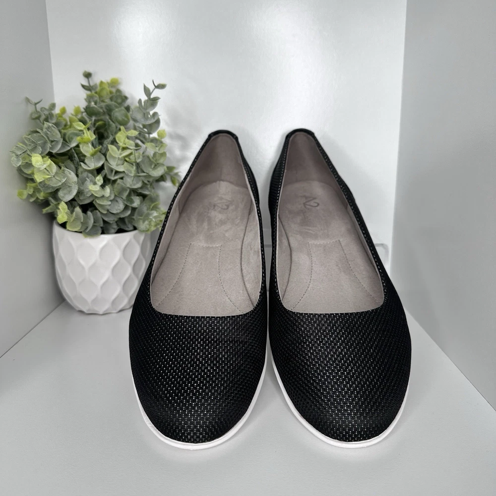AEROSOLES Women’s Flats Black Fabric Slip On Comfort Shoes Size 11 SIZE: 11 COLOR: Black MATERIAL: Fabric CONDITION: Good used condition, please see all the pictures. Professionally cleaned and sanitized with signs of wear, please see all the pictures. The item shown is the exact item you will receive. Experience the perfect blend of comfort and style with these AEROSOLES black flats. Featuring a sleek, minimalist design and a soft material upper, these shoes are ideal for both casual and semi-formal occasions. The versatile all-black color ensures they complement any outfit effortlessly.