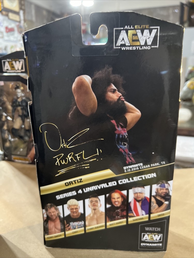 Get your hands on the AEW Unrivaled Collection Series #4 Ortiz Wrestling Action Figure #33 from Jazwares. This limited edition action figure stands at 6 inches tall and comes with clothes, boxed, and ready to be added to your collection. Representing the AEW franchise, this multicolor plastic figure is perfect for fans of sports and wrestling. With intricate details and high-quality craftsmanship, this original and licensed reproduction action figure is a must-have for any collector. The figure was recently manufactured in 2021, and it comes from Puerto Rico. Don't miss out on this opportunity to own a piece of AEW history.sold as is