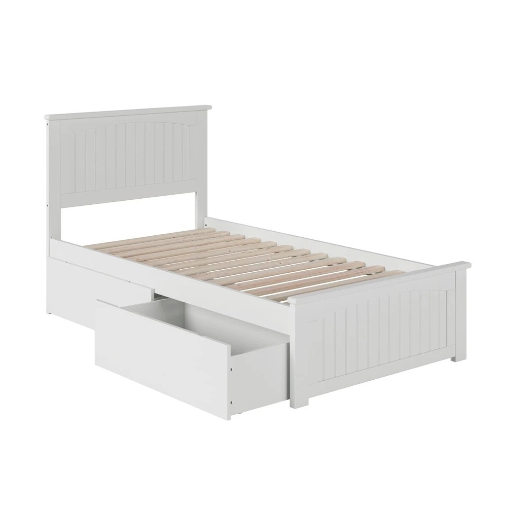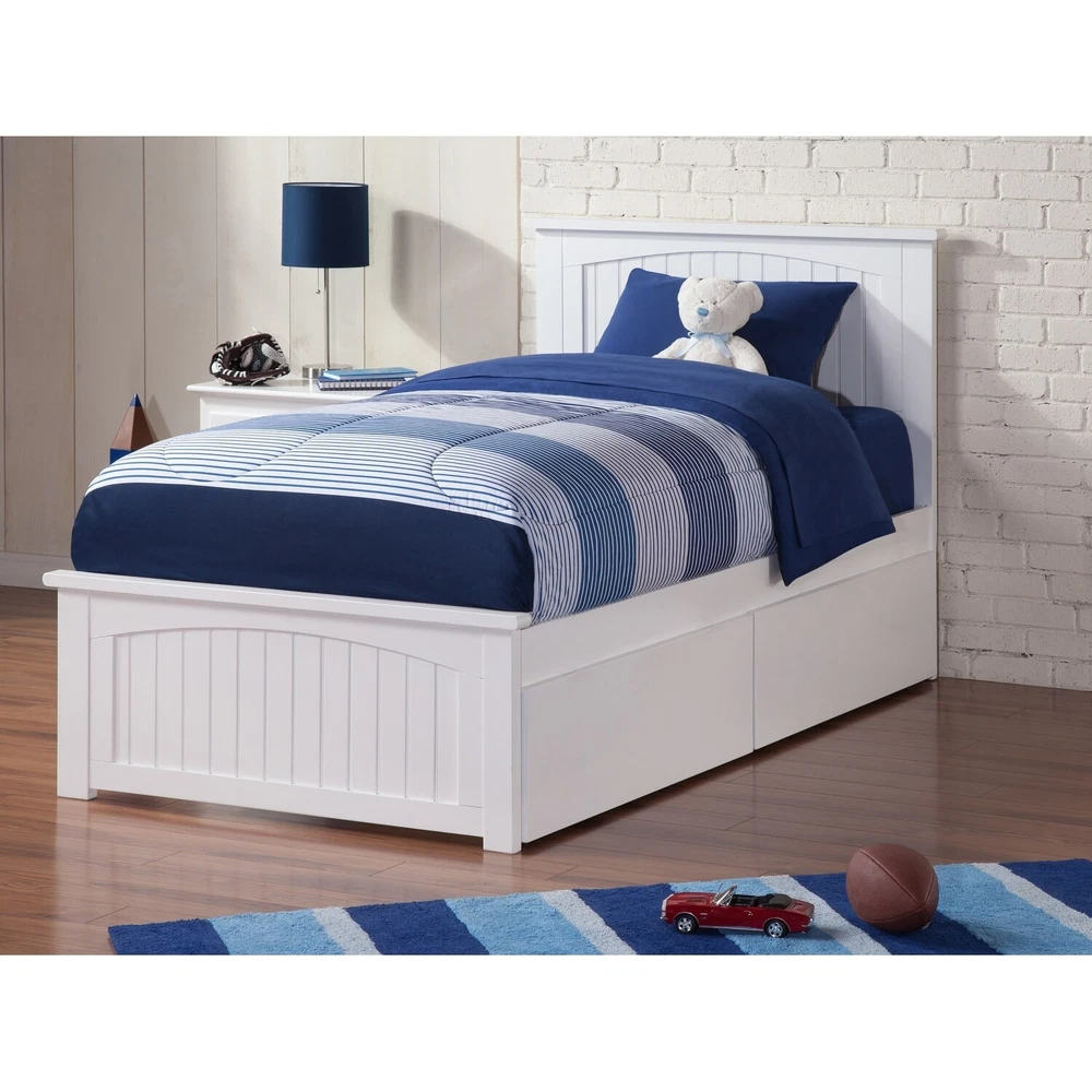 Whether you're dreaming of a seaside escape or a serene mountain retreat, the Nantucket Solid Wood Platform Bed with Matching Footboard and Set of 2 Storage Drawers is your ticket to transforming your bedroom style. With its captivating, grooved panel detailing in the headboard, this bed promises to be the centerpiece of any bedroom design. Choose from stunning finishes of Espresso, White, Walnut, Grey, or Light Toffee to best complement your existing décor. Available in various sizes, including Twin XL, Twin, Full, Queen, and King, the Nantucket caters to your space effortlessly. Crafted with a reliable slat kit, it's mattress-ready without the need for a foundation or box spring. Plus, it comes complete with a set of 2 underbed storage drawers to keep your space organized and Free Shipping Over $49.99* Details AFI Nantucket Platform Bed with Matching Footboard & Storage Drawers Product Description: Whether you're dreaming of a seaside escape or a serene mountain retreat, the Nantucket Solid Wood Platform Bed with Matching Footboard and Set of 2 Storage Drawers is your ticket to transforming your bedroom style. With its captivating, grooved panel detailing in the headboard, this bed promises to be the centerpiece of any bedroom design. Choose from stunning finishes of Espresso, White, Walnut, Grey, or Light Toffee to best complement your existing décor. Available in various sizes, including Twin XL, Twin, Full, Queen, and King, the Nantucket caters to your space effortlessly. Crafted with a reliable slat kit, it's mattress-ready without the need for a foundation or box spring. Plus, it comes complete with a set of 2 underbed storage drawers to keep your space organized and clutter-free. As a bonus, we've included a surface mount turbo charger, so all your electronics can stay charged and ready for action! Features: Cottage DesignSturdy, Solid Wood Construction features simple, grooved panel detailing that will complement any room Bed & Storage Drawers Feature Solid Hardwood and VeneersBed comes with 2 free-floating underbed drawers that can be placed on either side of the bed No Box Spring NeededDesigned for lasting durability, our slat kit supports your mattress to increase air flow for a more comfortable, cooler sleep Charging StationIncludes Surface Mount Turbo Charger, 6-foot cord, ETL listed, 18GA wire, 2 USB Ports .5V/3.5A Weight Capacity : Twin XL and Twin600lbs Full, Queen and King800 Lbs. Assembled Dimensions : Twin XLL:83.46 x W:42.76 x H:41.34 TwinL:77.95 x W:42.76 x H:41.34 FullL:77.95 x W:56.93 x H:44.29 QueenL:83.46 x W:63.70 x H:50 KingL:83.46 x W:79.92 x H:50